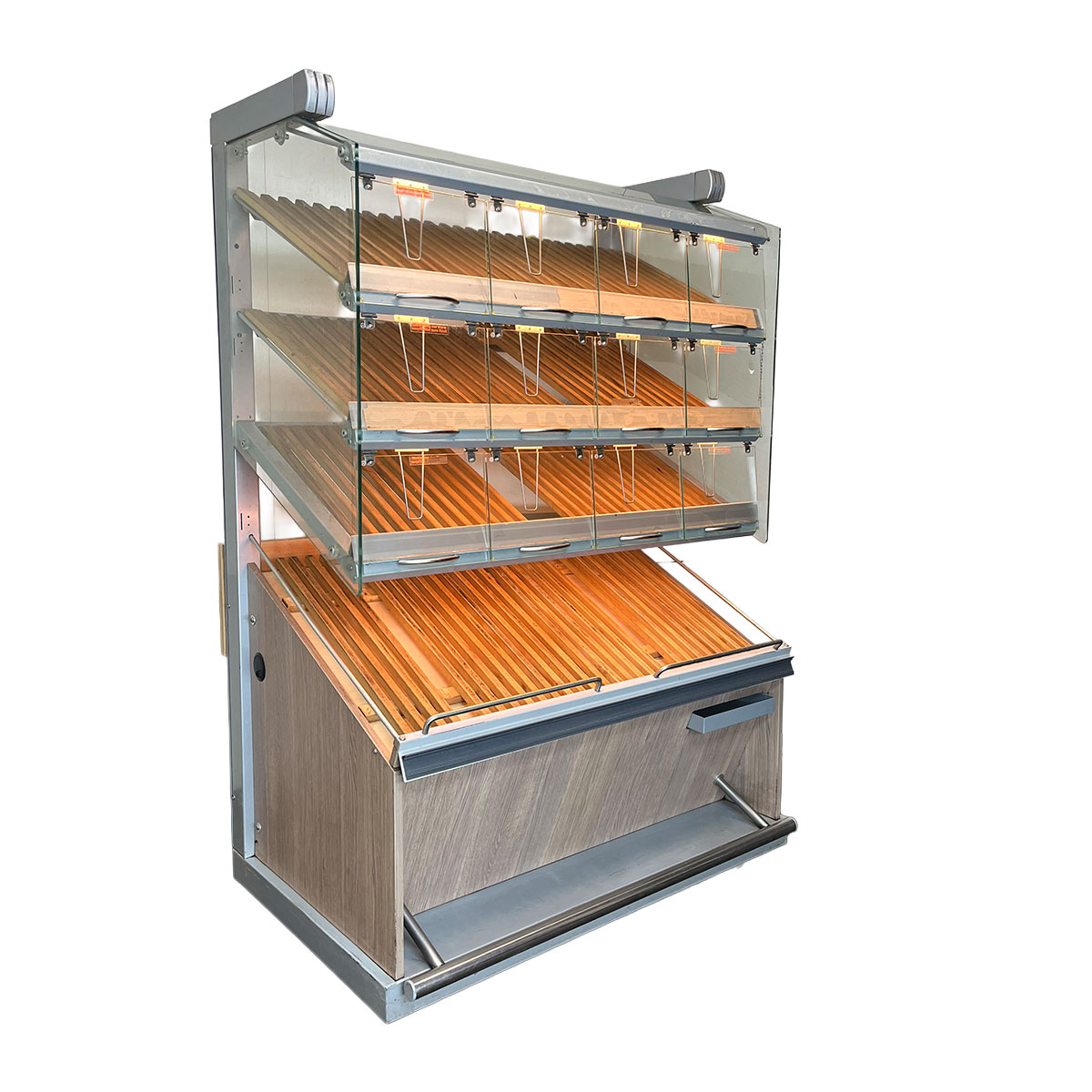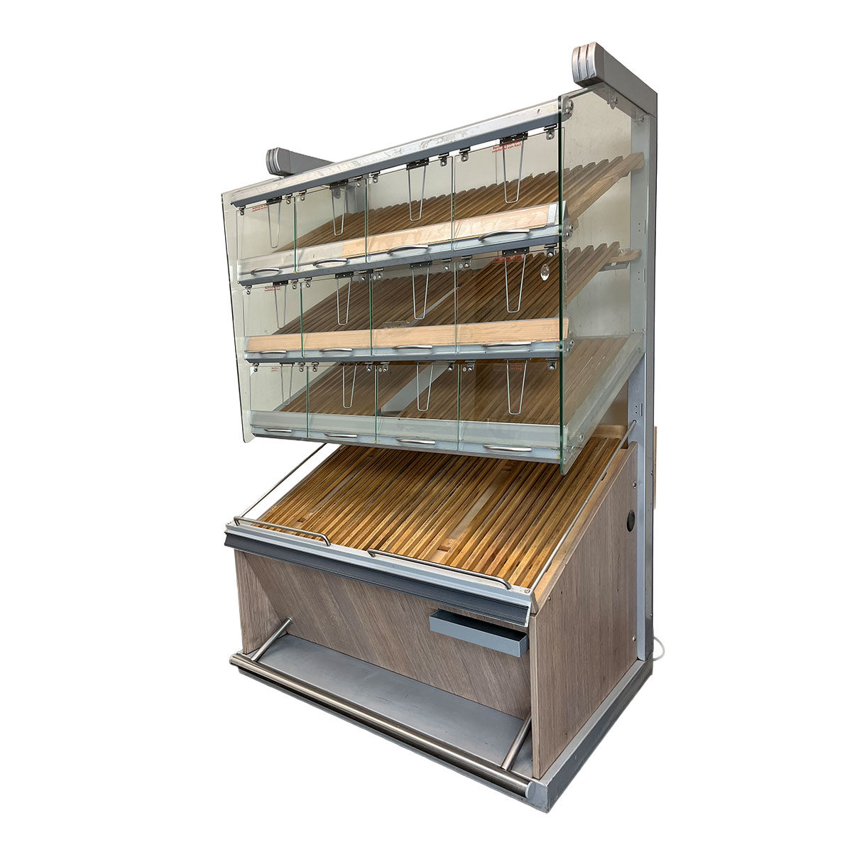 Das Backwarenregal ist für eine rückseitige Befüllung ausgelegt und unterstützt damit das bewährte FIFO-Prinzip (First In – First Out). So wird eine gleichmäßige Warenrotation gewährleistet – ein wichtiger Faktor für den täglichen Verkauf frischer Backwaren.