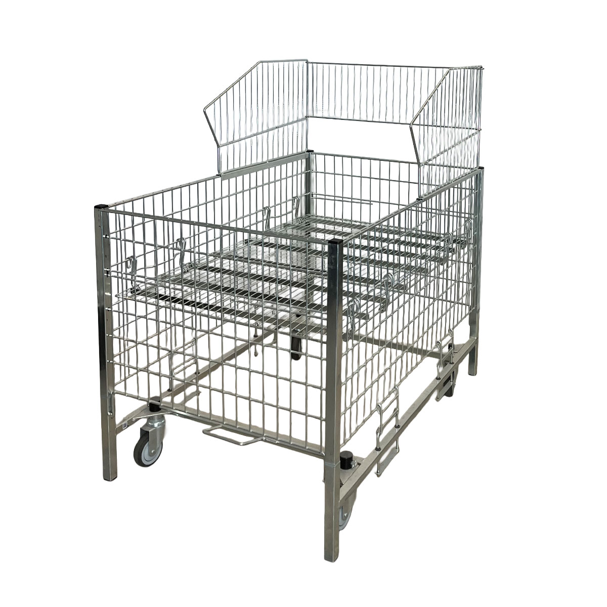 Dank der offenen Drahtstruktur bleibt die Ware gut sichtbar und erreichbar, während gleichzeitig ein Herausfallen verhindert wird. Der Aufsatz ist langlebig, pflegeleicht und optimal für den täglichen Einsatz im professionellen Ladenbau geeignet.