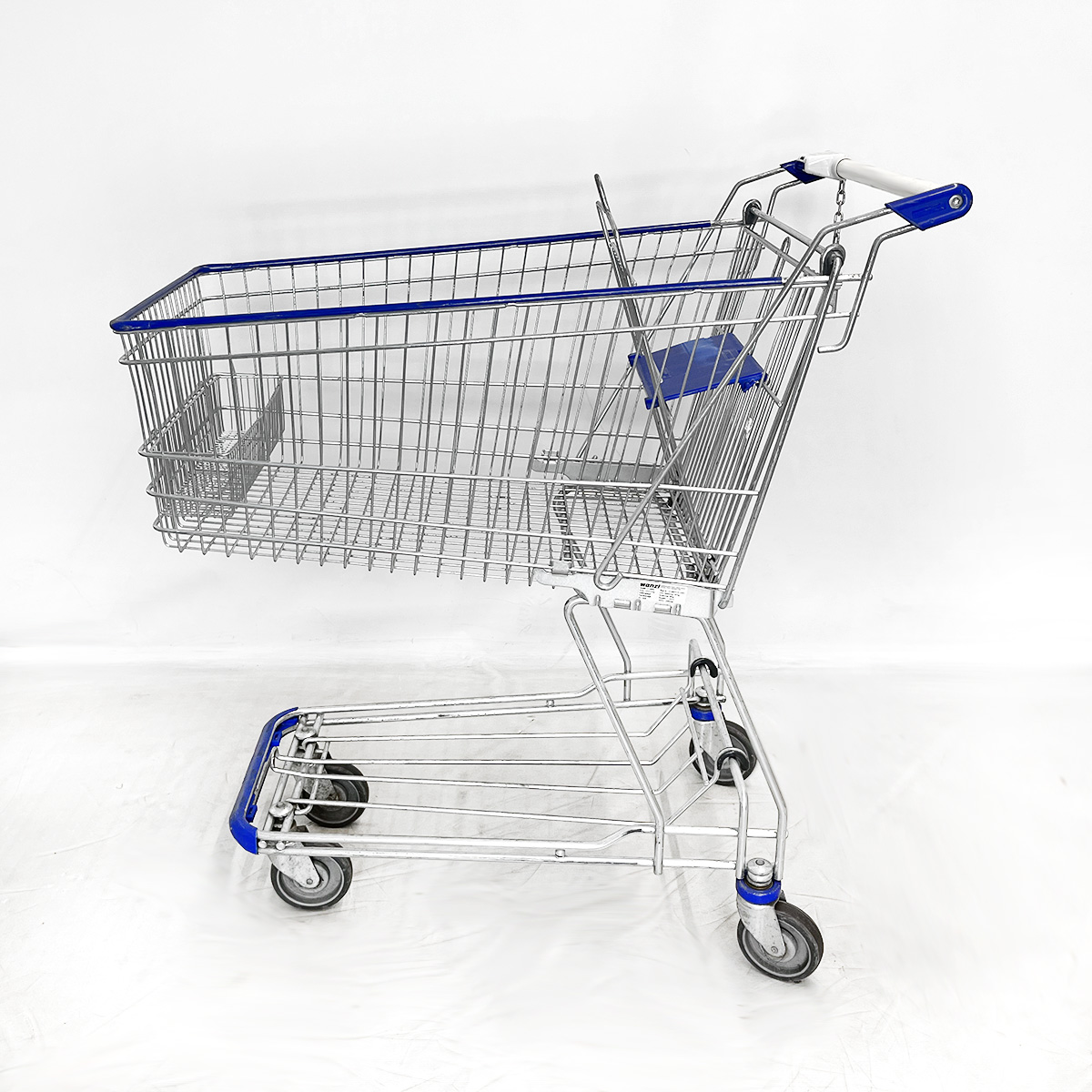 Dieser Einkaufswagen der Serie DRC ist vom namenhaften deutschen Hersteller WANZL, umfasst ein Korbvolumen von 132 Litern und ist mit einem Kindersitz ausgestattet.