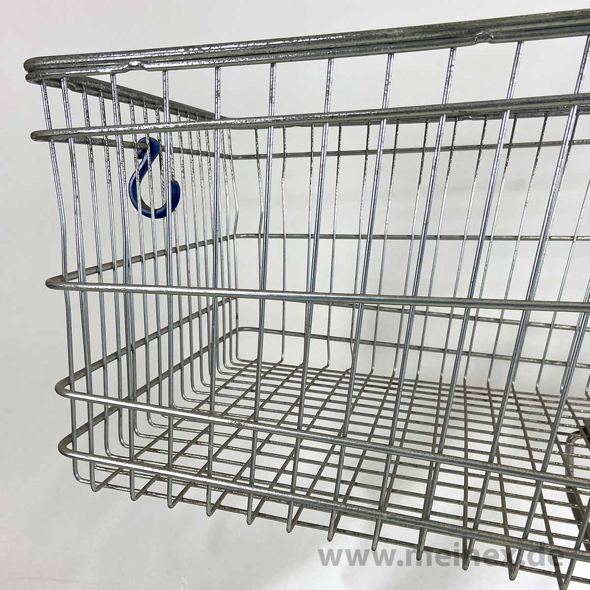 Dieser Einkaufswagen D155RC ist vom namenhaften deutschen Hersteller WANZL, umfasst ein Korbvolumen von 142 Litern und besitzt unter dem Korb eine praktische Ablagefläche für Getränkekisten oder andere sperrige Gegenstände. Außerdem ist er mit einem sehr praktischen Baby-Safe ausgestattet. Wenn junge Mütter zu Ihrer Zielgruppe gehören, sollten Sie in jedem Fall dieses Modell in Betracht ziehen. Die Ablage ist im Einkaufswagen integriert und eignet sich für nahezu alle marktüblichen Baby-Safe-Modelle. Diese Einkaufswagen befinden sich in einem sehr guten gebrauchten Zustand.