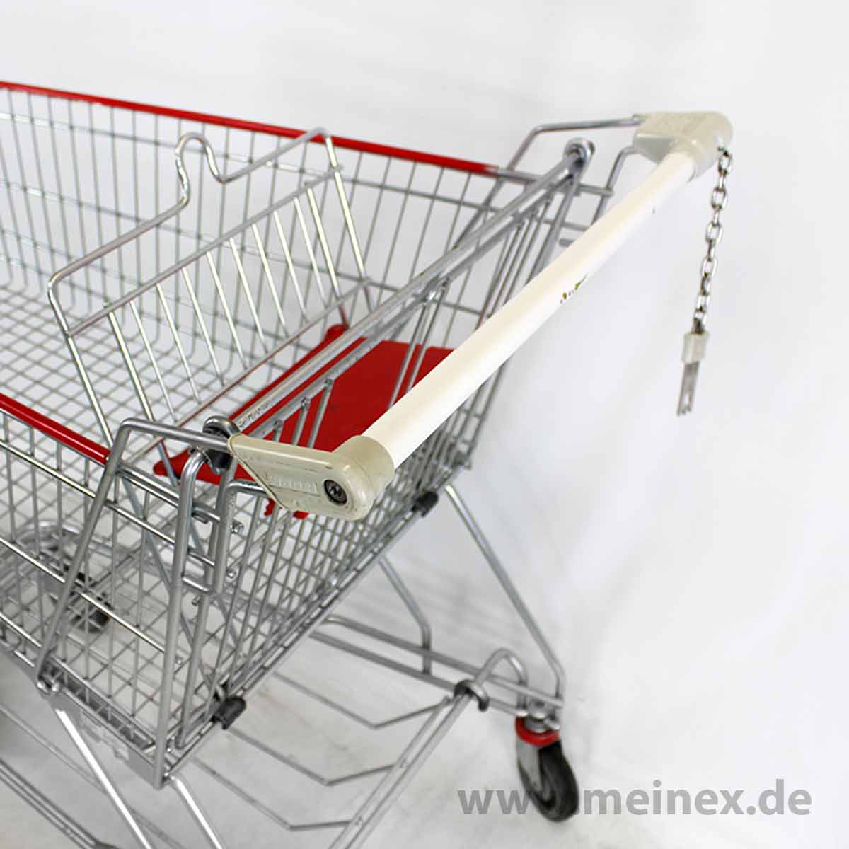 Dieser Einkaufswagen ist vom namenhaften deutschen Hersteller WANZL, umfasst ein Korbvolumen von 142 Litern und besitzt unter dem Korb eine praktische Ablagefläche für Getränkekisten oder andere sperrige Gegenstände.