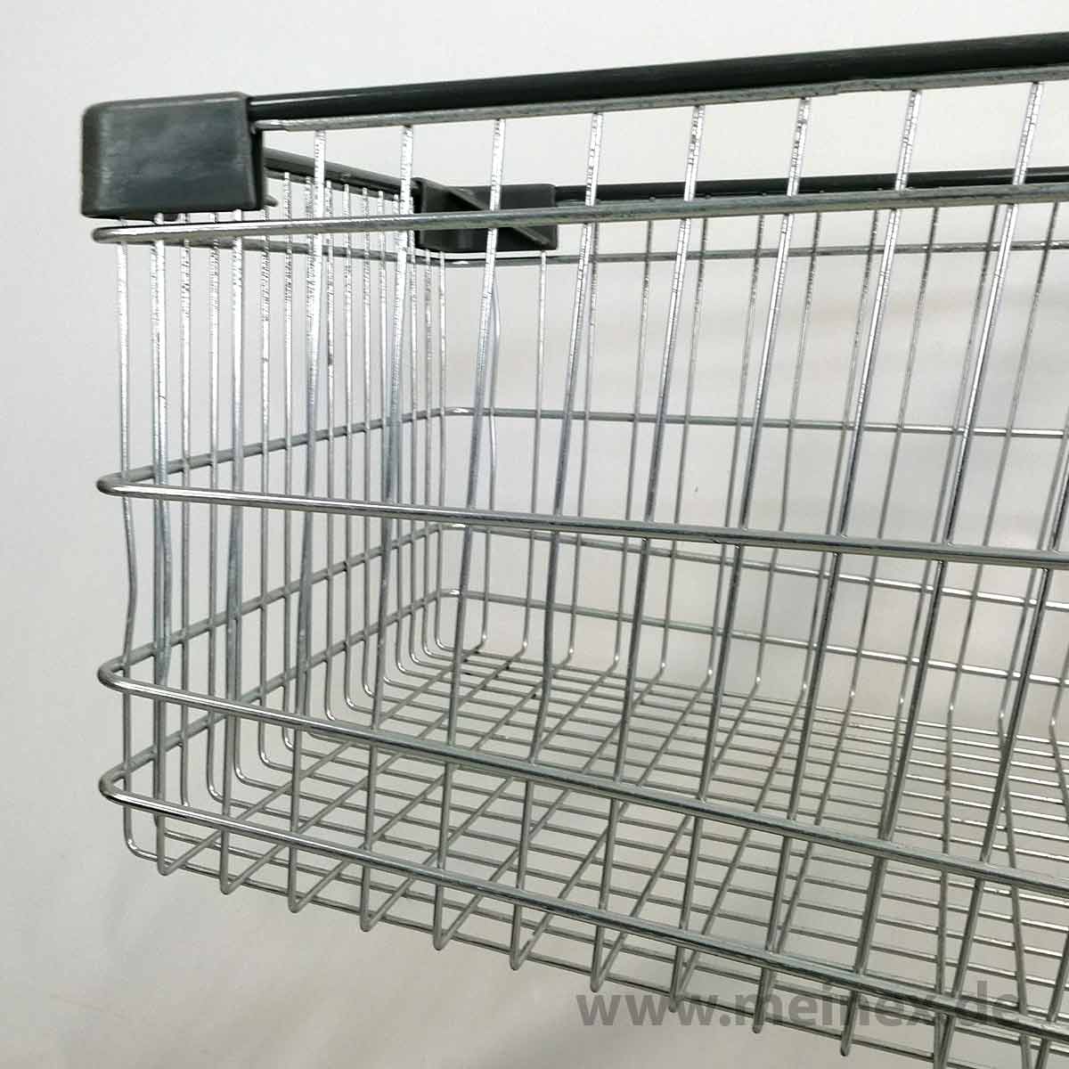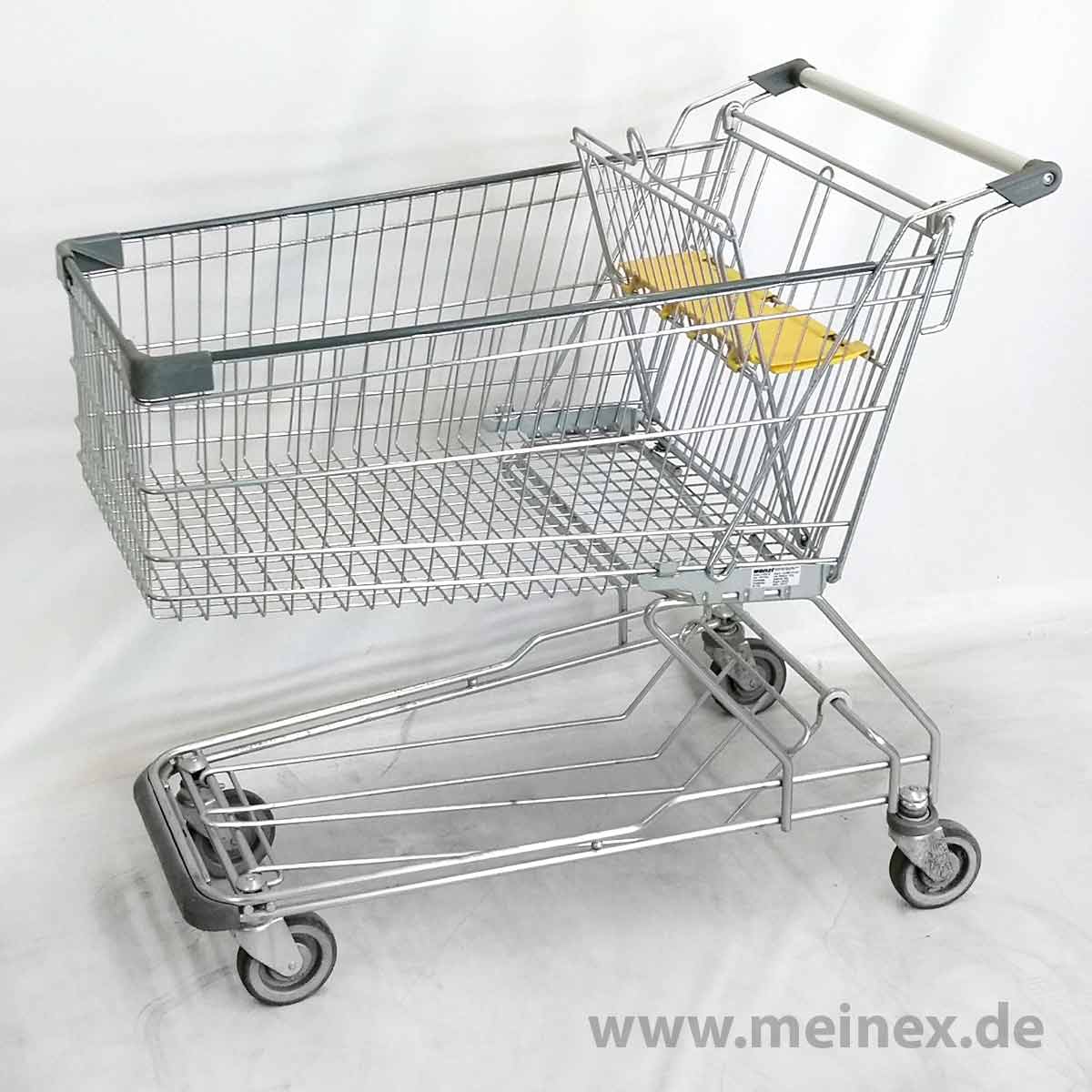 Dieser Einkaufswagen ist vom namenhaften deutschen Hersteller WANZL, umfasst ein Korbvolumen von 142 Litern und besitzt unter dem Korb eine praktische Ablagefläche für Getränkekisten oder andere sperrige Gegenstände.