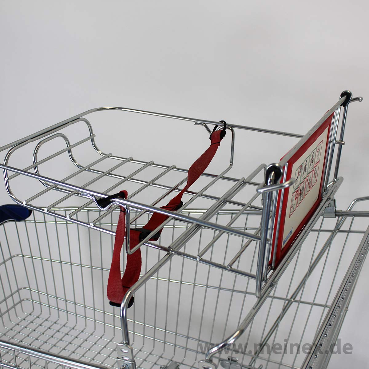 Mit der Ablage im Einkaufswagen ELX wird Schweres und Sperriges, wie Getränkekisten oder Waschmittelkartons, sicher transportiert. Die ausgeklappten Ablagen werden beim Ineinanderschieben der Einkaufswagen selbstständig zurückgeklappt.