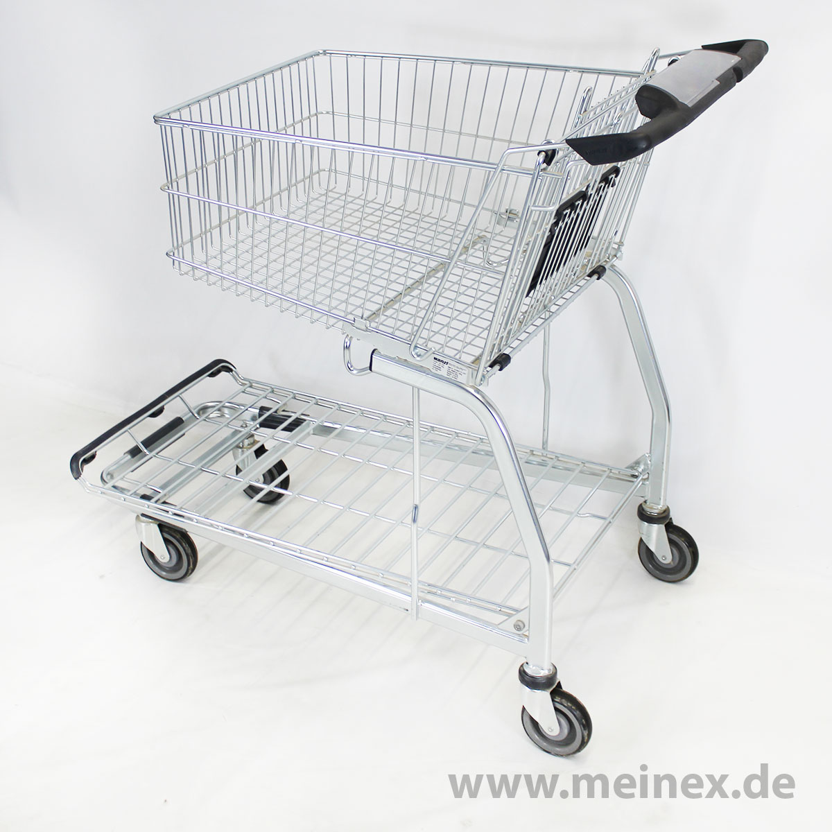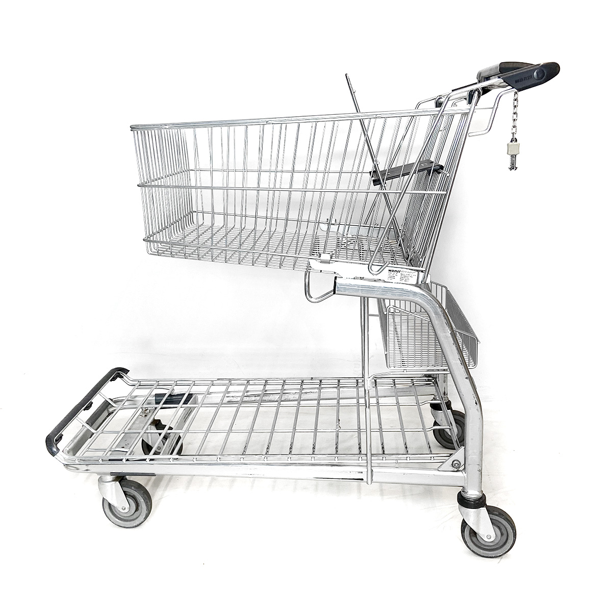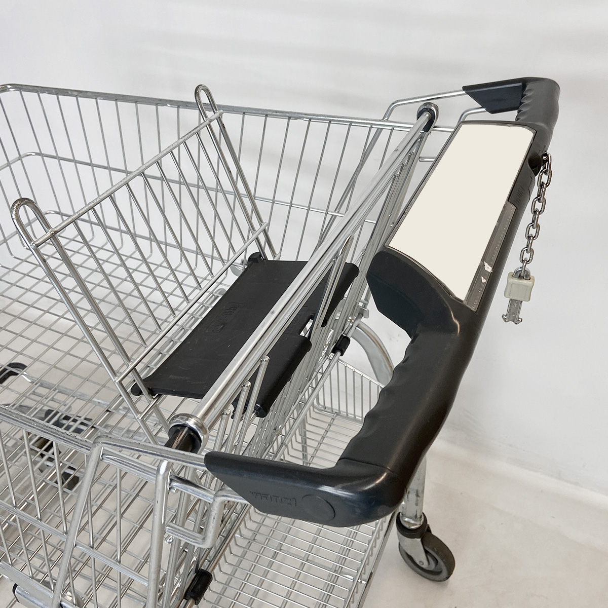 Dieser Einkaufswagen ist vom namenhaften deutschen Hersteller WANZL, umfasst ein Korbvolumen von 115 Litern und ist mit einem Kindersitz sowie Pfandsystem flexibel einsetzbar. Die Tragkraft beläuft sich auf 165 kg. Der Einkaufswagen befindet er sich in einem guten Zustand.