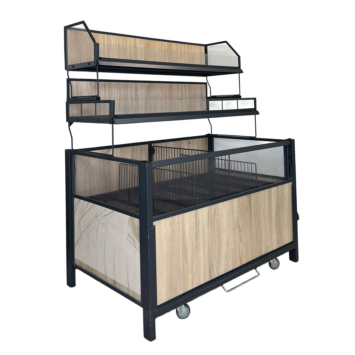 This used promotional table / bargain table in a light wood finish offers a flexible and robust presentation surface for your merchandise promotions. Measuring 1,250 mm wide, 880 mm deep, and 860 mm high, it's ideal for use in retail stores, special areas, or seasonal sales.