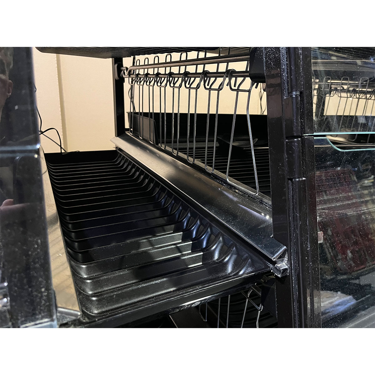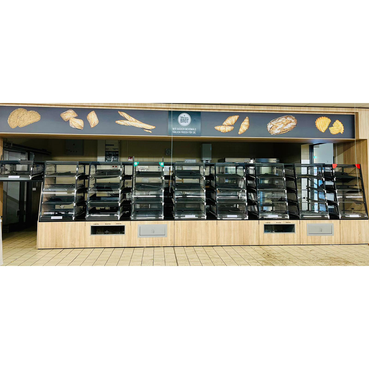 The display unit is designed for self-service and is conveniently loaded from the rear, ensuring a smooth and hygienic sales process. Customers can easily access the products through plexiglass openings, using bakery tongs for hygienic handling.