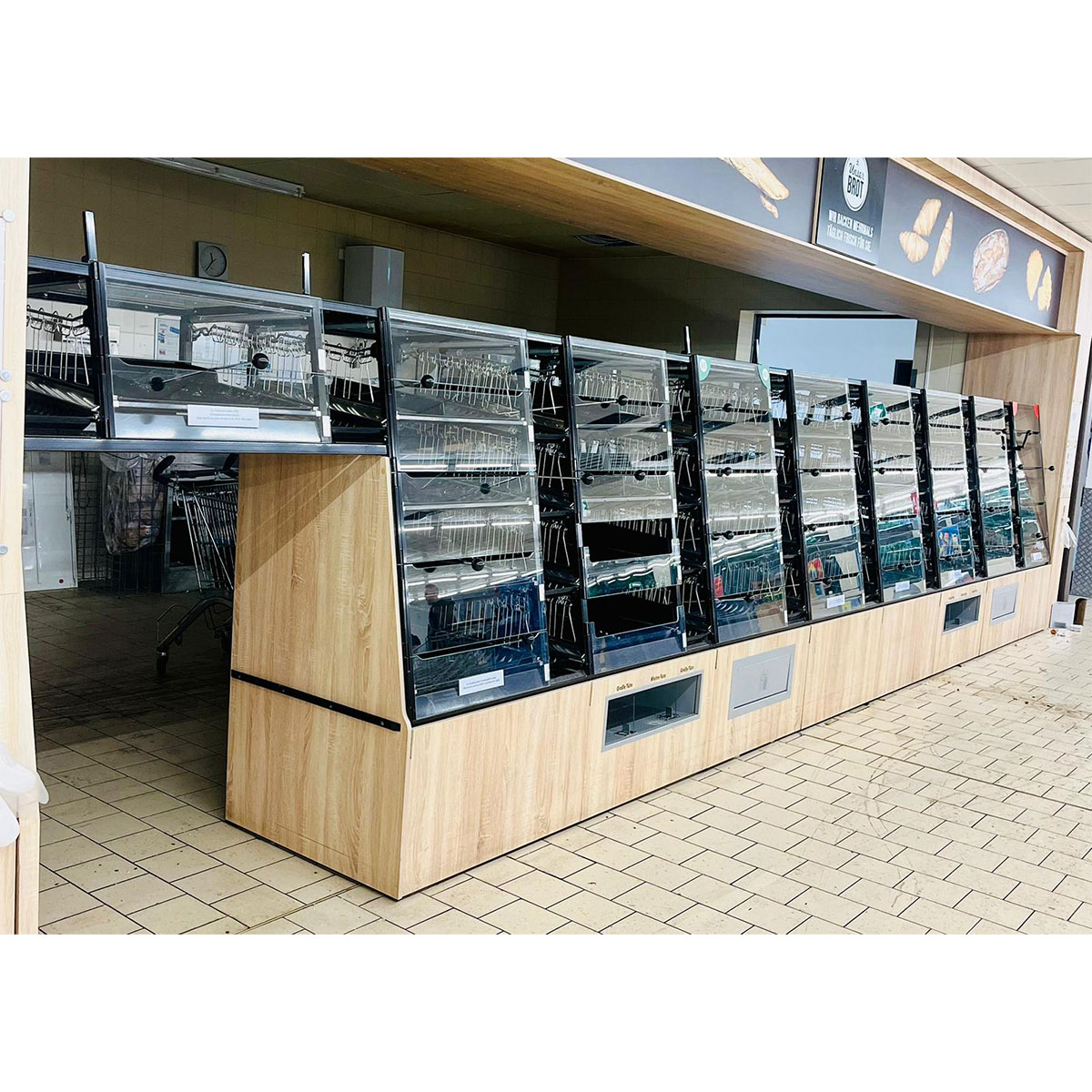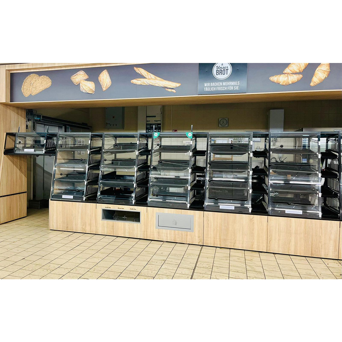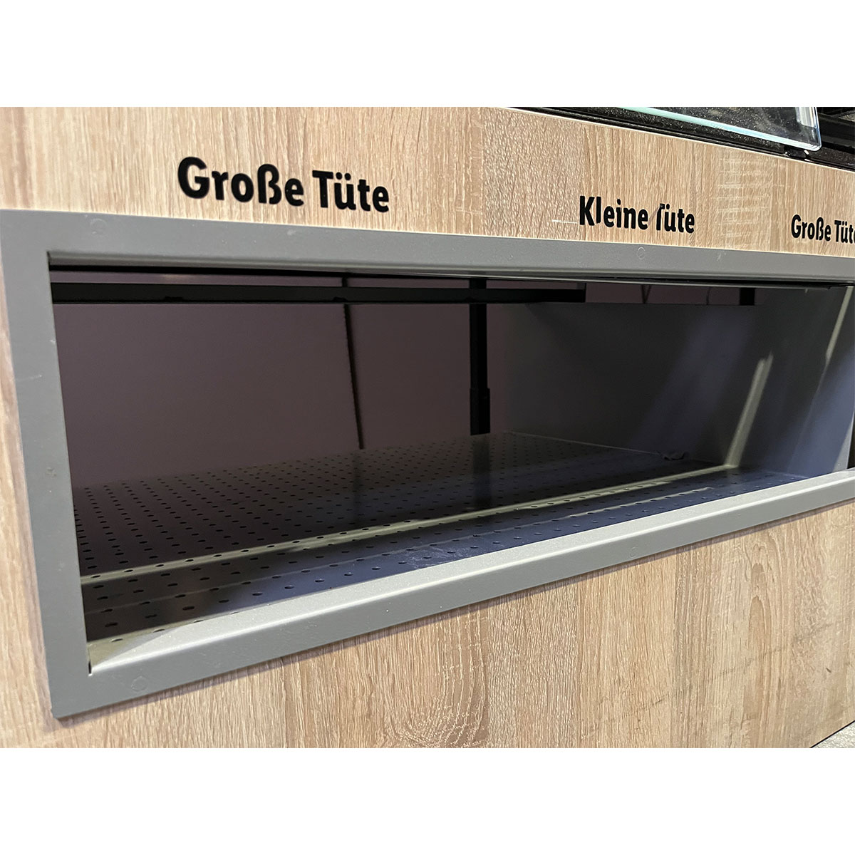 One unit is specifically designed for the installation of a bread slicer – ideal for offering customers a bread-slicing service right on-site. Two additional units are equipped with integrated compartments for small and large bags of baked goods, ensuring your customers always have the appropriate packaging readily available.