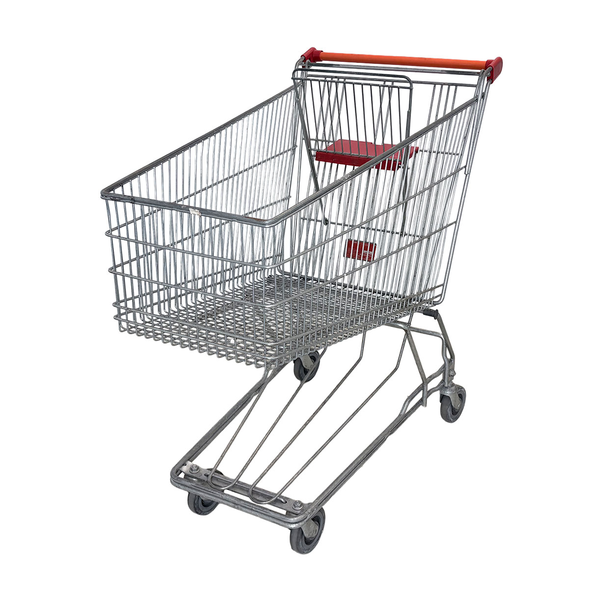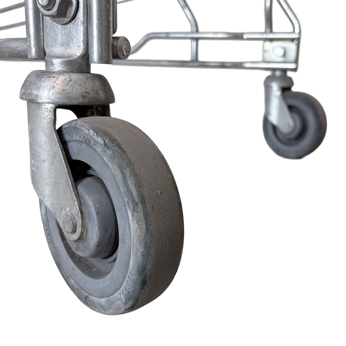 The shopping cart features a sturdy wire basket with a capacity of 180 liters, offering generous storage space for all kinds of products – from groceries and household goods to beverages and bulkier items. The classic shape of the basket ensures easy loading and a clear overview when loading.