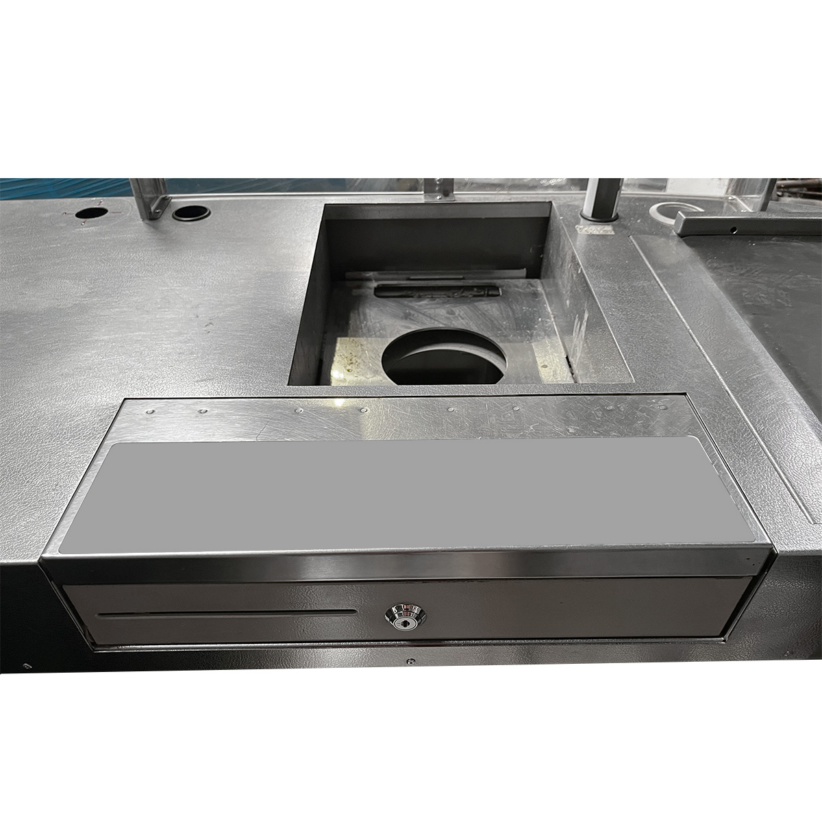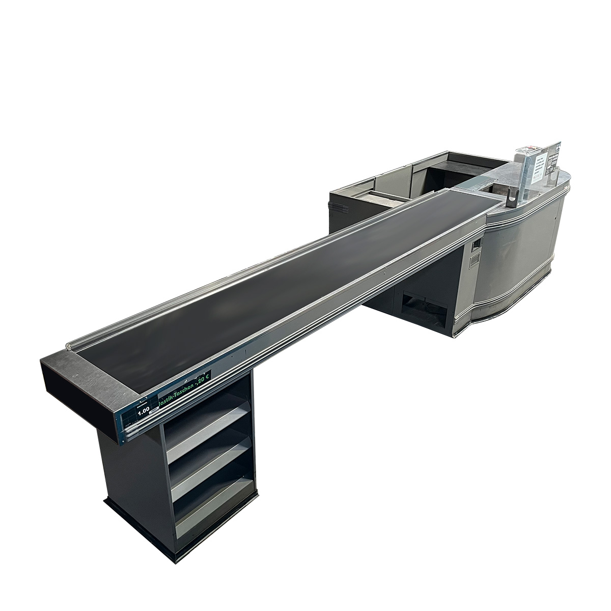 With a conveyor belt length of an impressive 3,200 mm, this checkout counter offers enough space to comfortably handle even larger purchases. The long conveyor belt makes it possible to transport a large amount of goods efficiently and quickly, which significantly speeds up the checkout process and creates a more pleasant shopping experience for both staff and customers. The belt runs smoothly and evenly, which contributes to the smooth processing of the checkout process.
