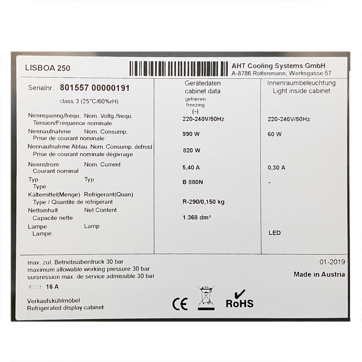 | Refrigerant: | R290 |