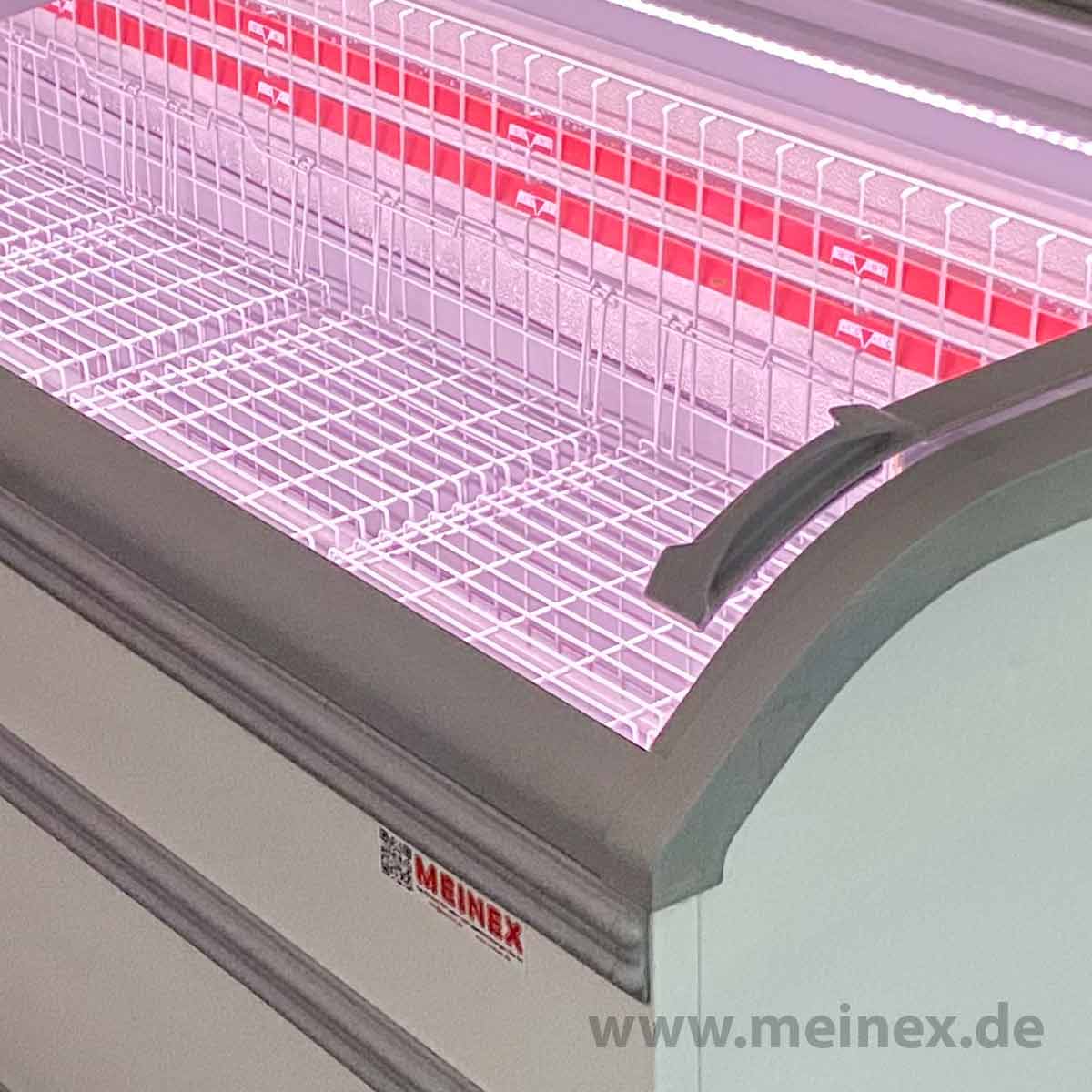 Useful accessories: partition grille set vs. border grille set The partition grille set has partition walls and storage grids compared to the border grille set. The storage grids allow the cooled air to circulate close to the floor. This is necessary for the correct operation of a fresh meat chest or a switchable chest in the cooling range from 0 °C to + 2 °C. Freezers in the temperature range -18 °C to -23 °C can be operated without a grille set, with a border grille set or a partition grille set. The individual shipment is not possible due to the high risk of transport damage.