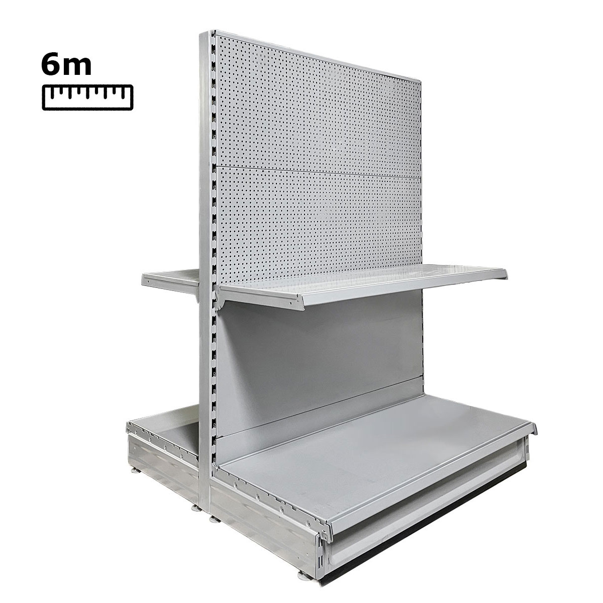 A particular advantage of the shelving unit is its height-adjustable shelf. This shelf can be easily installed at the desired height, allowing you to flexibly adapt the shelving unit to your product range. Whether you want to display smaller sales packaging, bottles, household goods, or other products – the gondola shelving unit can be reconfigured in just a few simple steps.