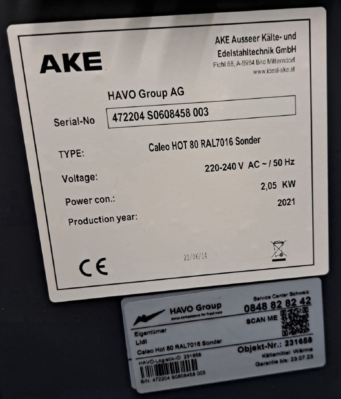 Heated display case Ideal AKE Caleo Hot 80 - 800 mm freestanding display case - used