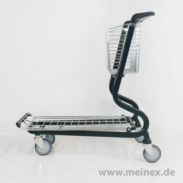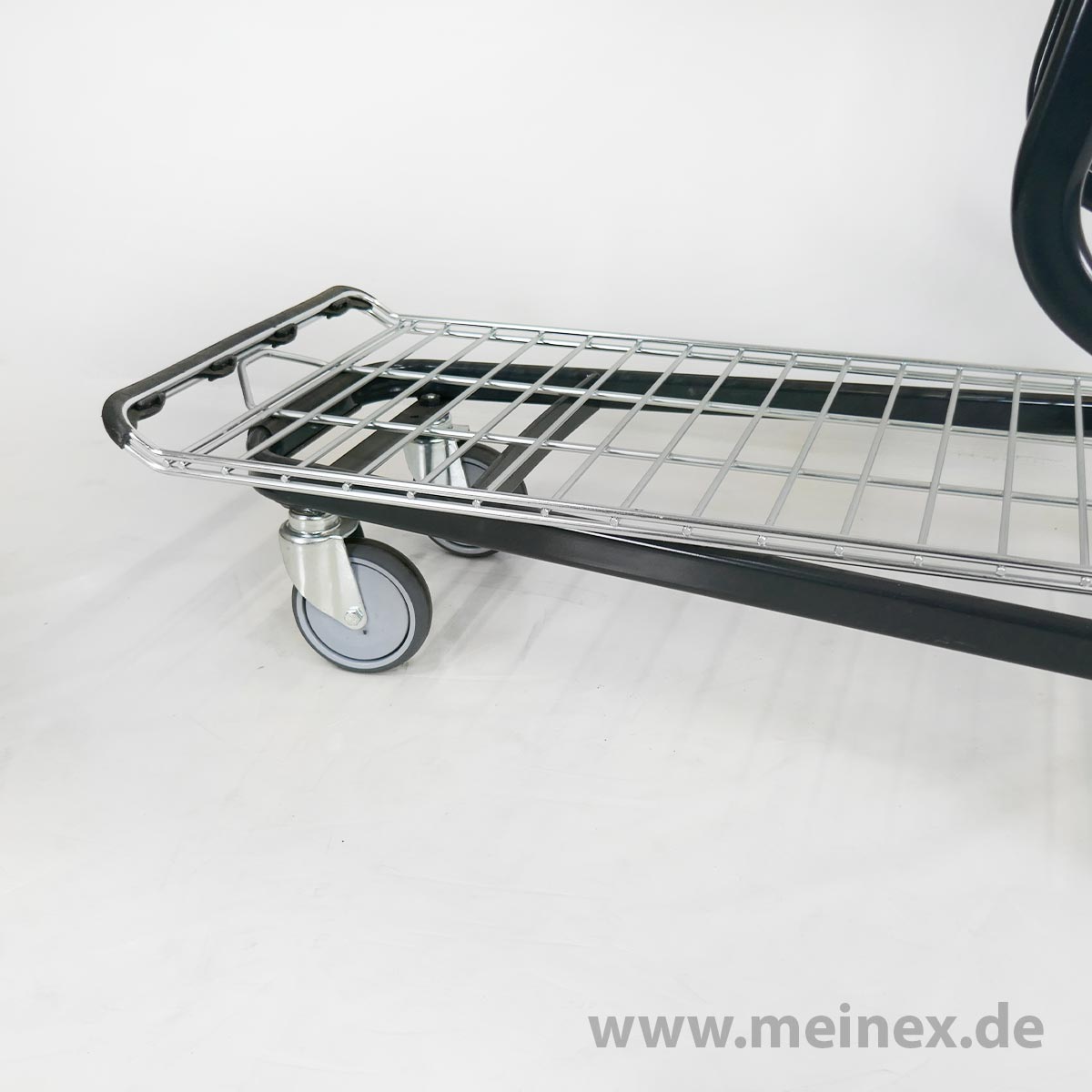 The MUC 200 transport trolley is from the renowned German manufacturer WANZL and features a storage area of 850 x 440 mm with a load capacity of 250 kg for bulky and heavy items. The basket has a basket volume of 26 liters. The 200 series is characterized by its sophisticated technology and balanced design. Many cash & carry stores rely on this transport trolley with its durable platform and spacious basket. The platform itself in this model consists of a wire frame and a non-slip bar.