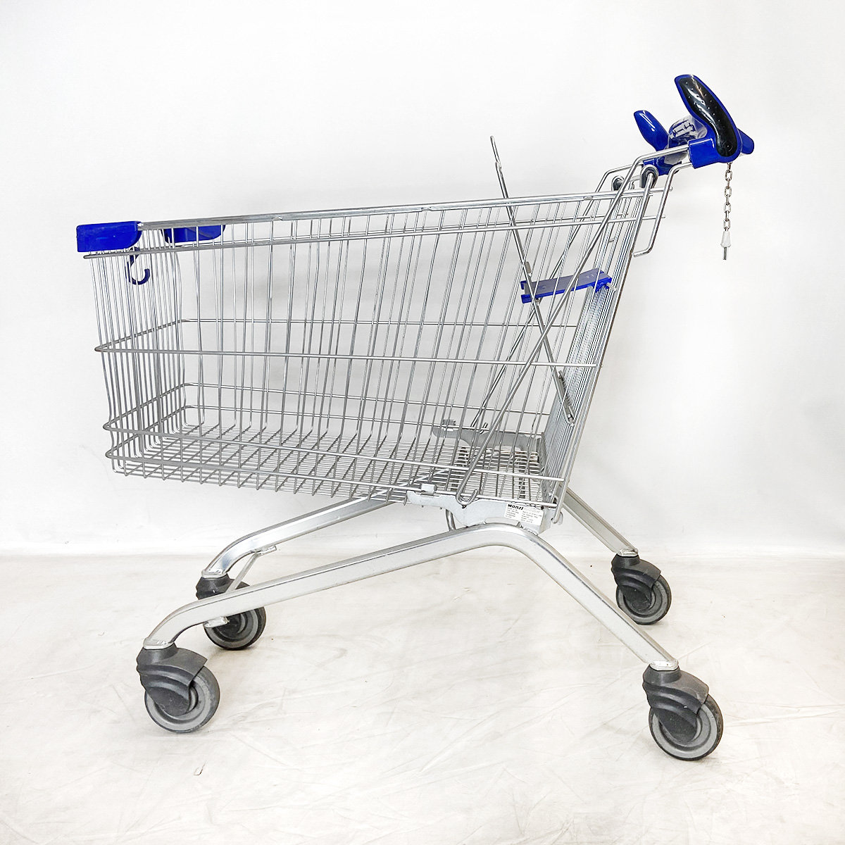 This shopping trolley is from the well-known German manufacturer WANZL, has a basket volume of 181 liters and is equipped with a child seat and deposit system. The carrying capacity amounts to 181 kg.