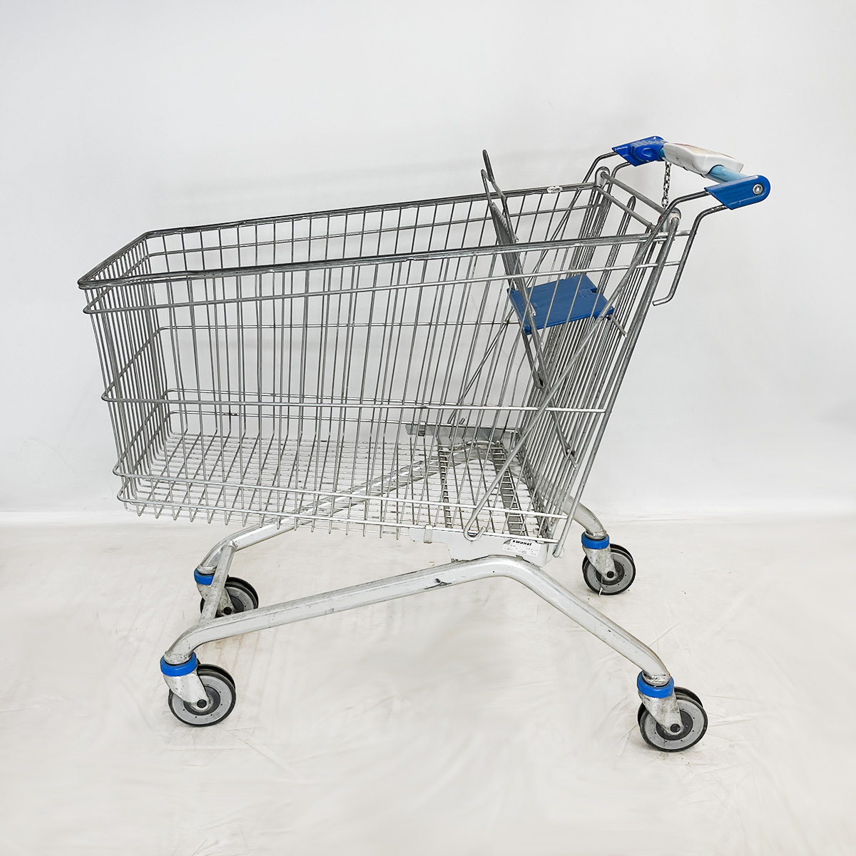 This shopping trolley is from the well-known German manufacturer WANZL, has a basket volume of 181 liters and is equipped with a child seat and deposit system. The carrying capacity amounts to 181 kg.