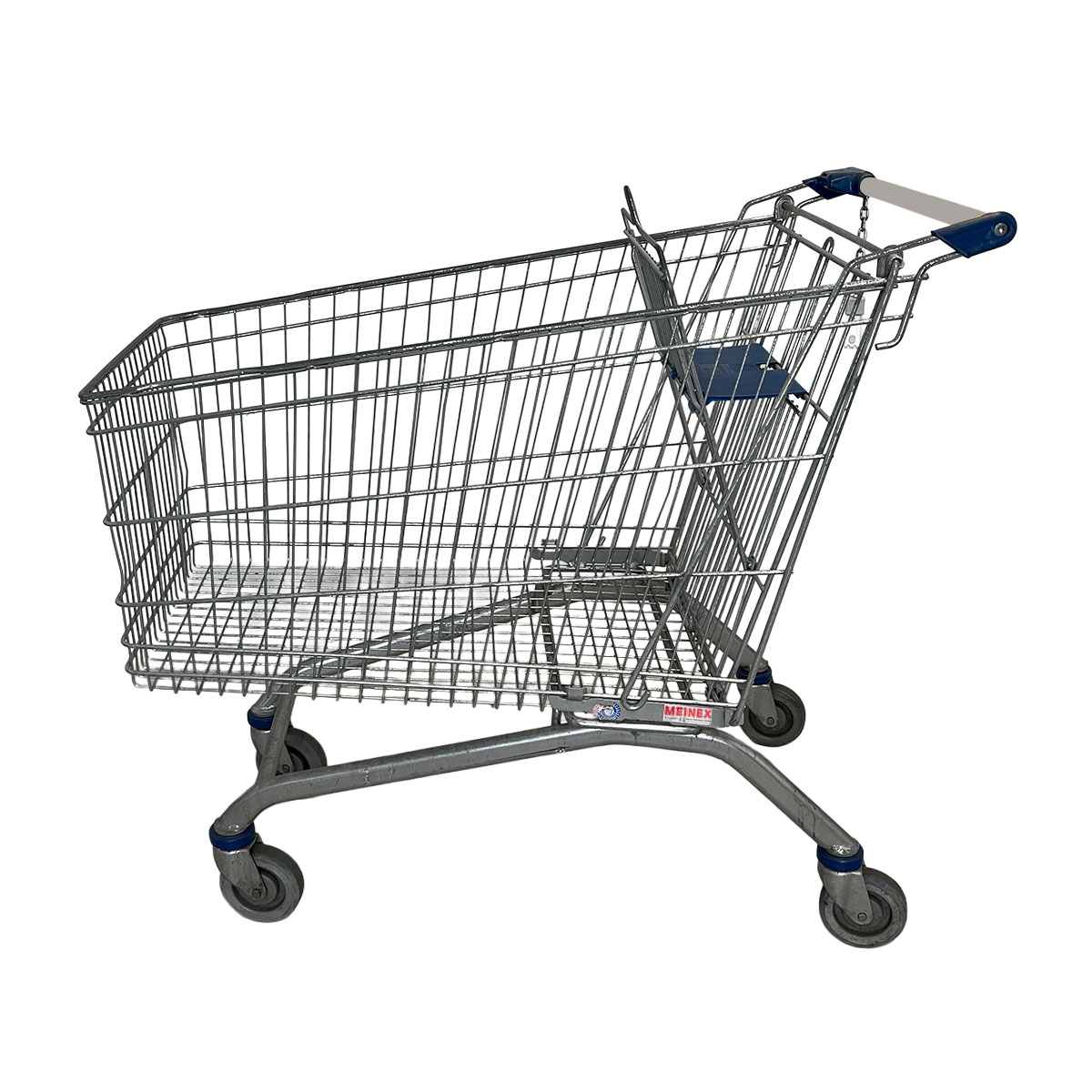 This shopping trolley is from the well-known German manufacturer WANZL, has a basket volume of 212 liters and is equipped with a child seat and deposit system. The carrying capacity amounts to 212 kg.
