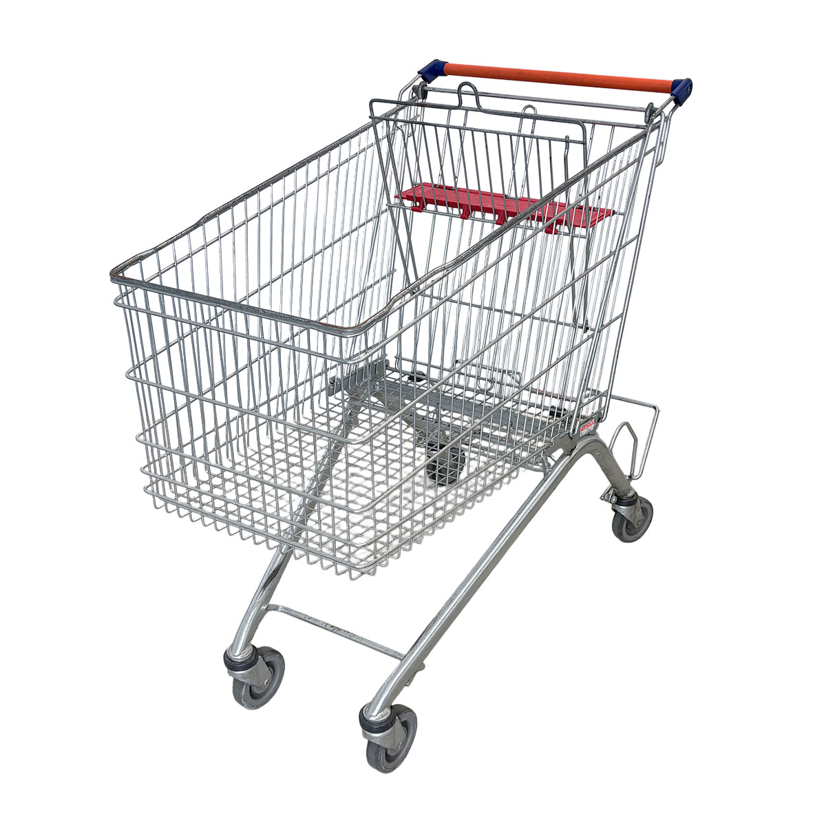 A special highlight is the red child seat integrated directly into the shopping cart. It offers children a safe place to sit while shopping and allows parents a more comfortable shopping experience. The seat is sturdy, easy to clean, and folds up to save space when not in use.