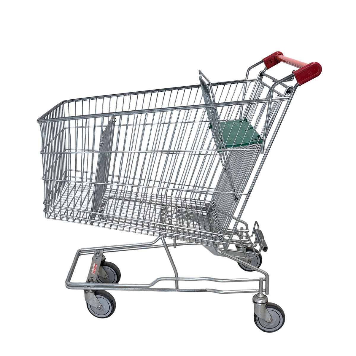 This shopping cart impresses with its robust metal construction, designed for daily retail use. With a capacity of 180 liters, the cart offers ample space for medium to large purchases without appearing bulky or cumbersome.