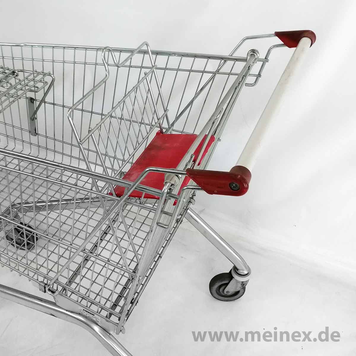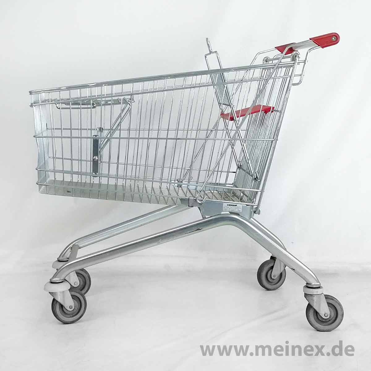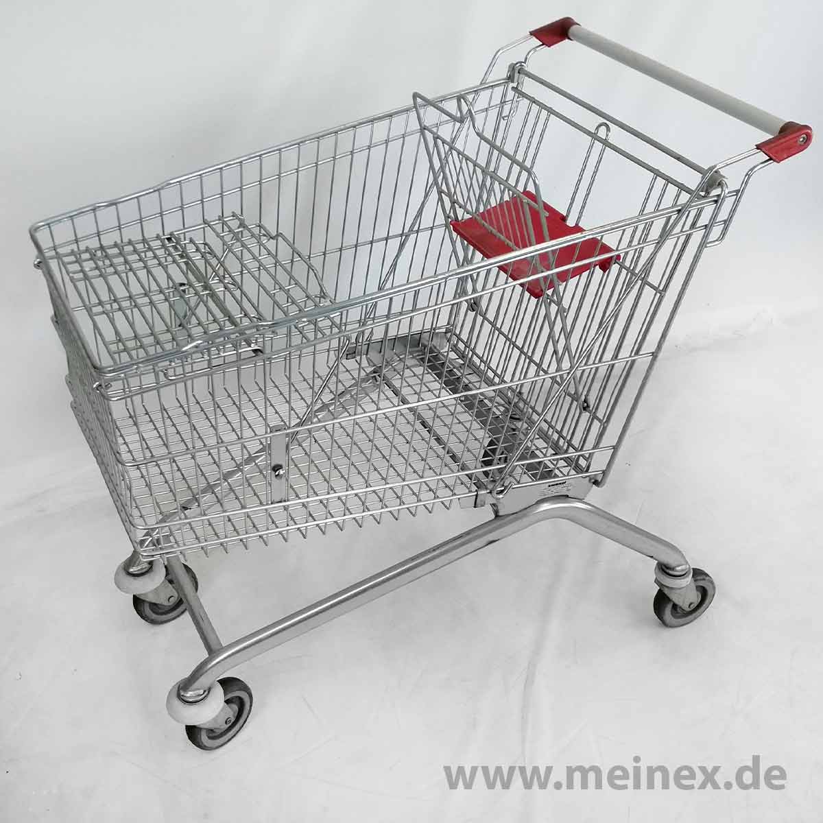 This shopping trolley is from the well-known German manufacturer WANZL, has a basket volume of 153 liters and is equipped with a child seat and deposit system. The carrying capacity amounts to 153 kg.