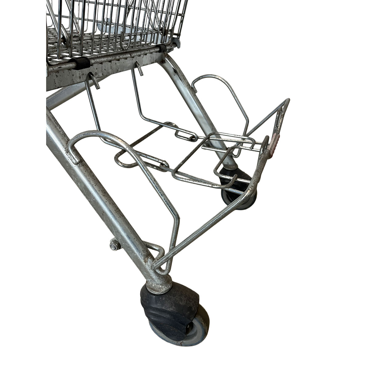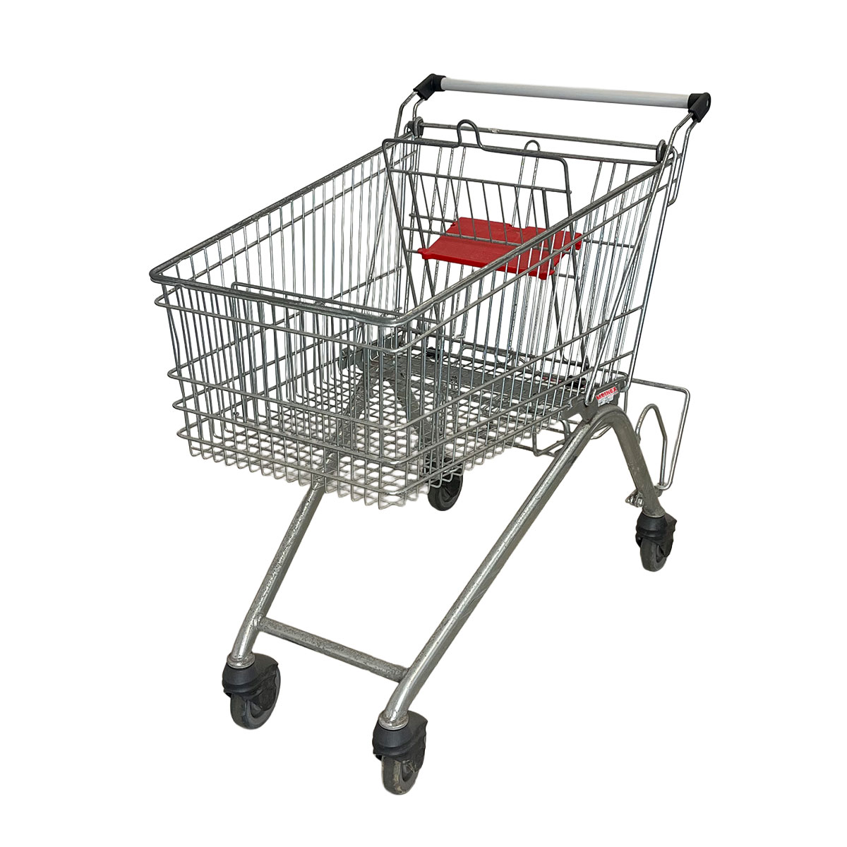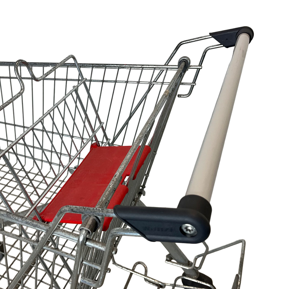 This shopping trolley ELX130 is made in Germany by WANZL. The trolley is equipped with a child seat and has a basket volume of 132 liters.