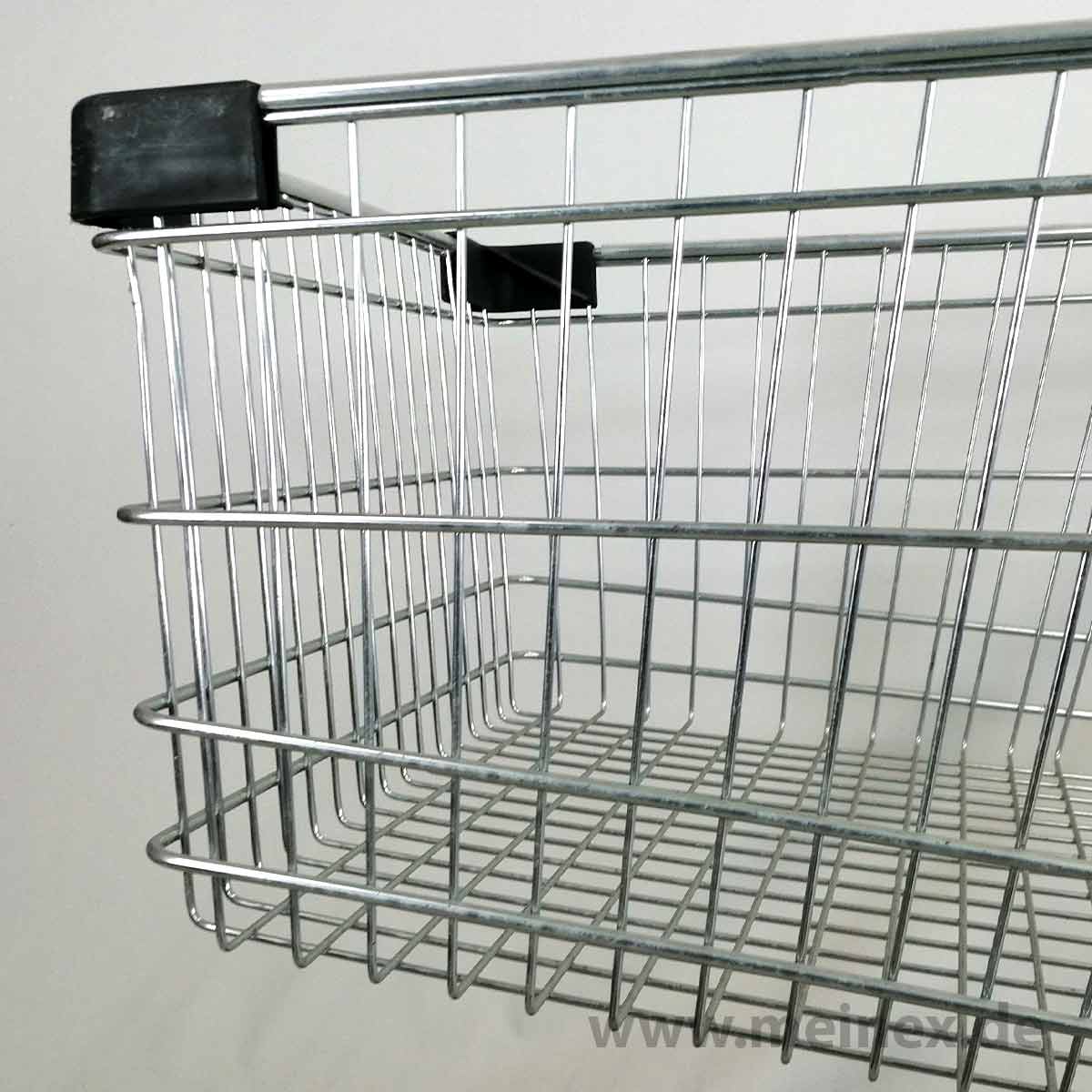 Even very small items are in good hands in this dimensionally stable shopping cart, because it was made to fit and built very close-meshed. The shopping trolleys can be pushed together to save space.