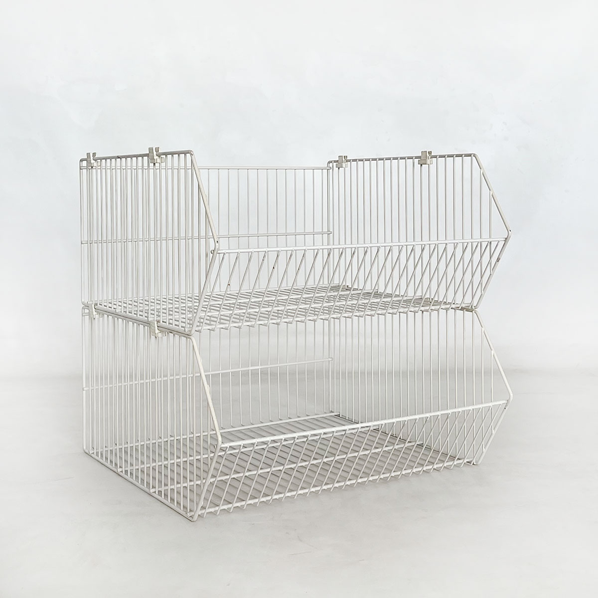 Whether for the presentation of special items, promotional items, small items, or as a storage container for tools, accessories, or spare parts – the Wanzl stacking basket impresses with its versatility and quality. The open wire construction always ensures good visibility of the contents and adequate ventilation – especially practical for storing textiles or delicate goods.
