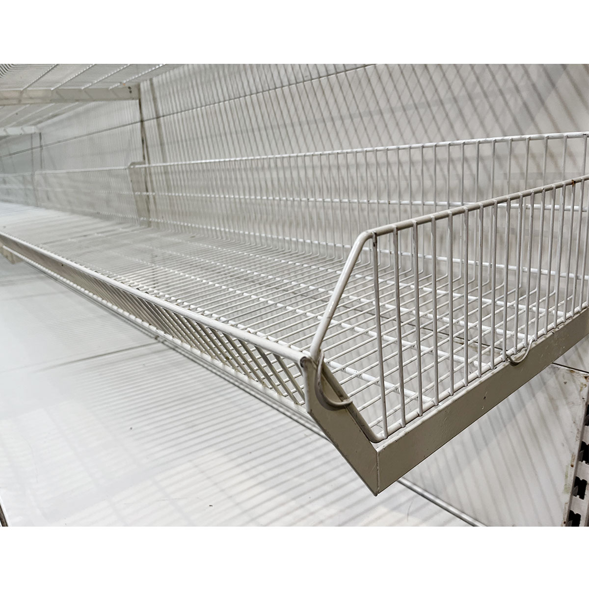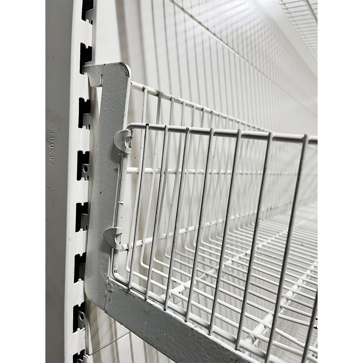 The delivery includes three sturdy wire baskets, each with a depth of 370 mm. These baskets can be individually adjusted in height, allowing you to precisely adapt the storage space to your products or requirements. A particularly practical detail: The baskets can be hung not only horizontally but also at an angle if necessary. This angled positioning is particularly useful for presenting loose or stackable items such as promotional items, textiles, toys, stored goods, or food packaging.