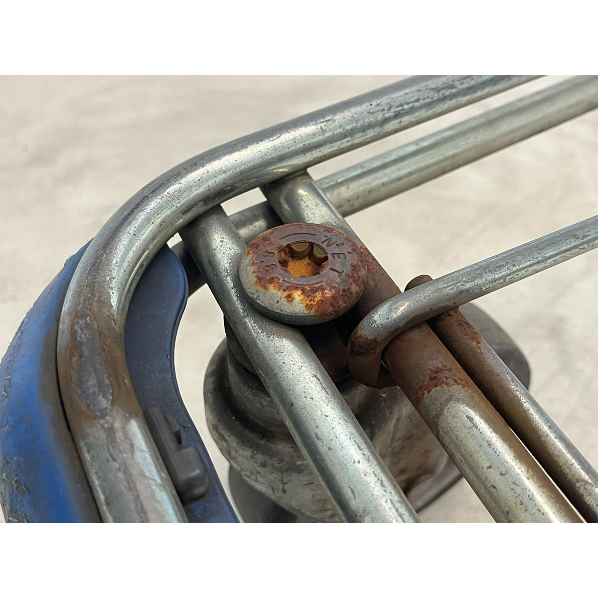 Wanzl D185RC shopping trolley - child seat, blue - with rust spots - used