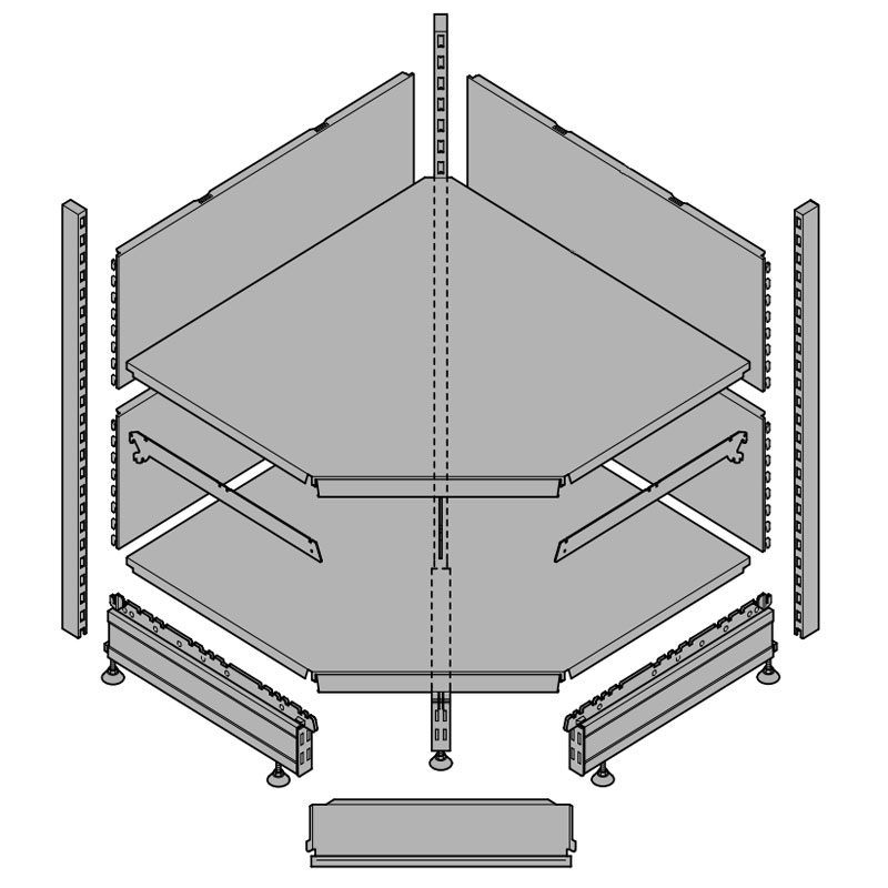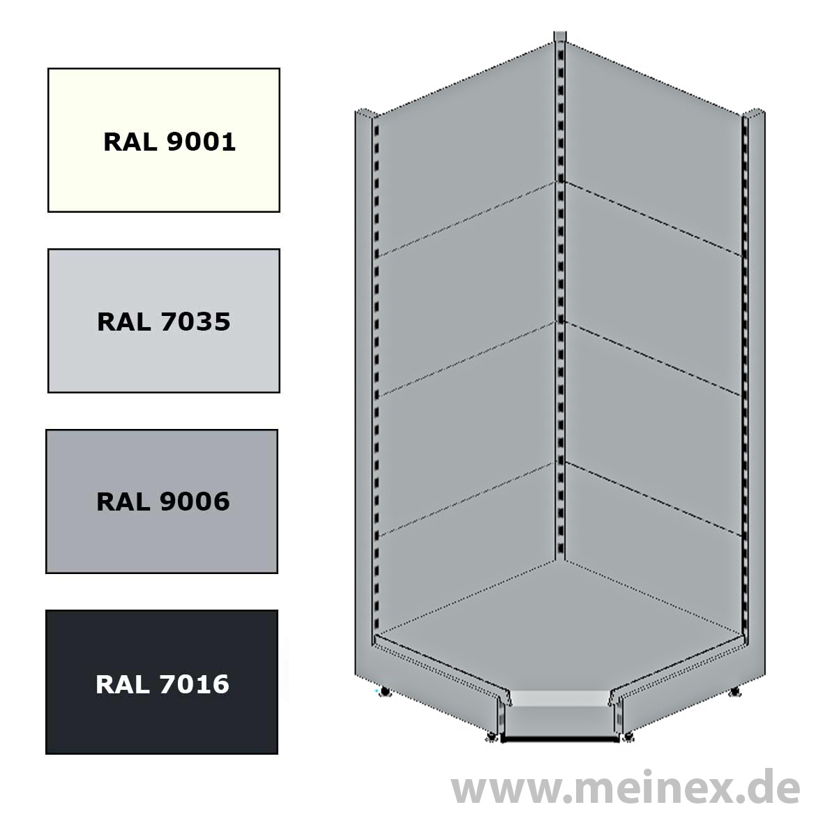 Das Tegometallregal Innenecke bietet vielfältige Möglichkeiten den Verkaufsraum zu gestalten. Konfigurieren Sie sich eine Regalfront, welche auch vor einer Raumecke nicht halt macht. Konfigurieren Sie bequem Ihr Inneneckregal von Tegometall. Die parallele und transparente Preisberechnung zeigt die Stückliste und Preise für alle benötigten Einzelteile der Innenecke. Profitieren Sie von unserer Transparenzoffensive beim Kauf einer Innenecke von Tegometall. Der Innenecken Konfigurator gibt Ihnen die Möglichkeit die Farbe, Säulenhöhe und die Fußtiefe zu bestimmen. Daraufhin legen Sie die Anzahl der Fachböden fest. In einem letzten Schritt ermöglicht der Innenecken Konfigurator das Hinzufügen von Preisschienen und der Sockelblende und fertig ist die Innenecke von Tegometall. Ladenregale vom Marktführer Tegometall zeichnen sich durch höchste Qualität, einfache Montage und enorme Stabilität aus. Der Farbauftrag ist spotless und besteht eine hohe Beanspruchung im Alltag. Die einzelnen Fachböden lassen sich durch das Stecksystem in jeder gewünschten Position anbringen. Die Fachböden sind durch ihre stabile Bauweise geeignet sehr große Lasten zu tragen. Ausführung der Innenecke von Tegometall: