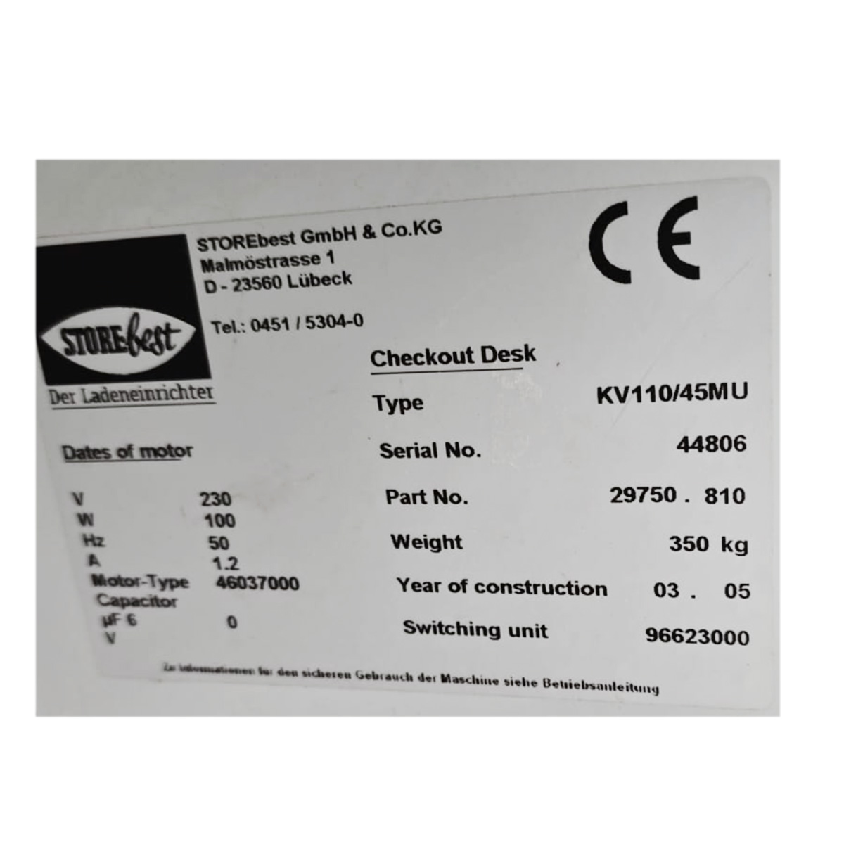 Produktinformationen "Kassentisch KV110/45MU von Storebest - 2.900 mm - linksläufig - gebraucht"