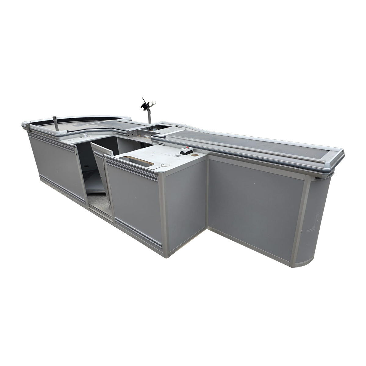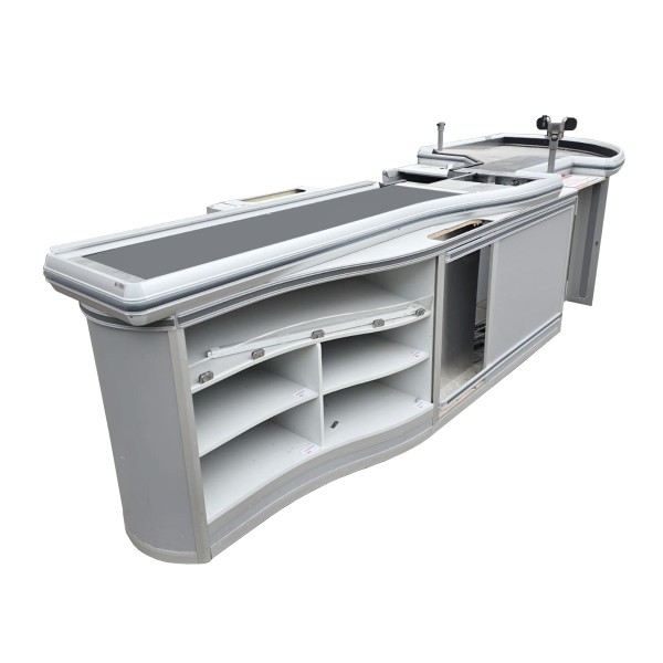 • Extra lange Arbeitsfläche: Mit einer Gesamtlänge von 4,5 Metern bietet der Kassentisch ausreichend Platz für die Abwicklung großer Warenmengen. Dies sorgt für einen reibungslosen und schnellen Kassiervorgang, auch zu Stoßzeiten.