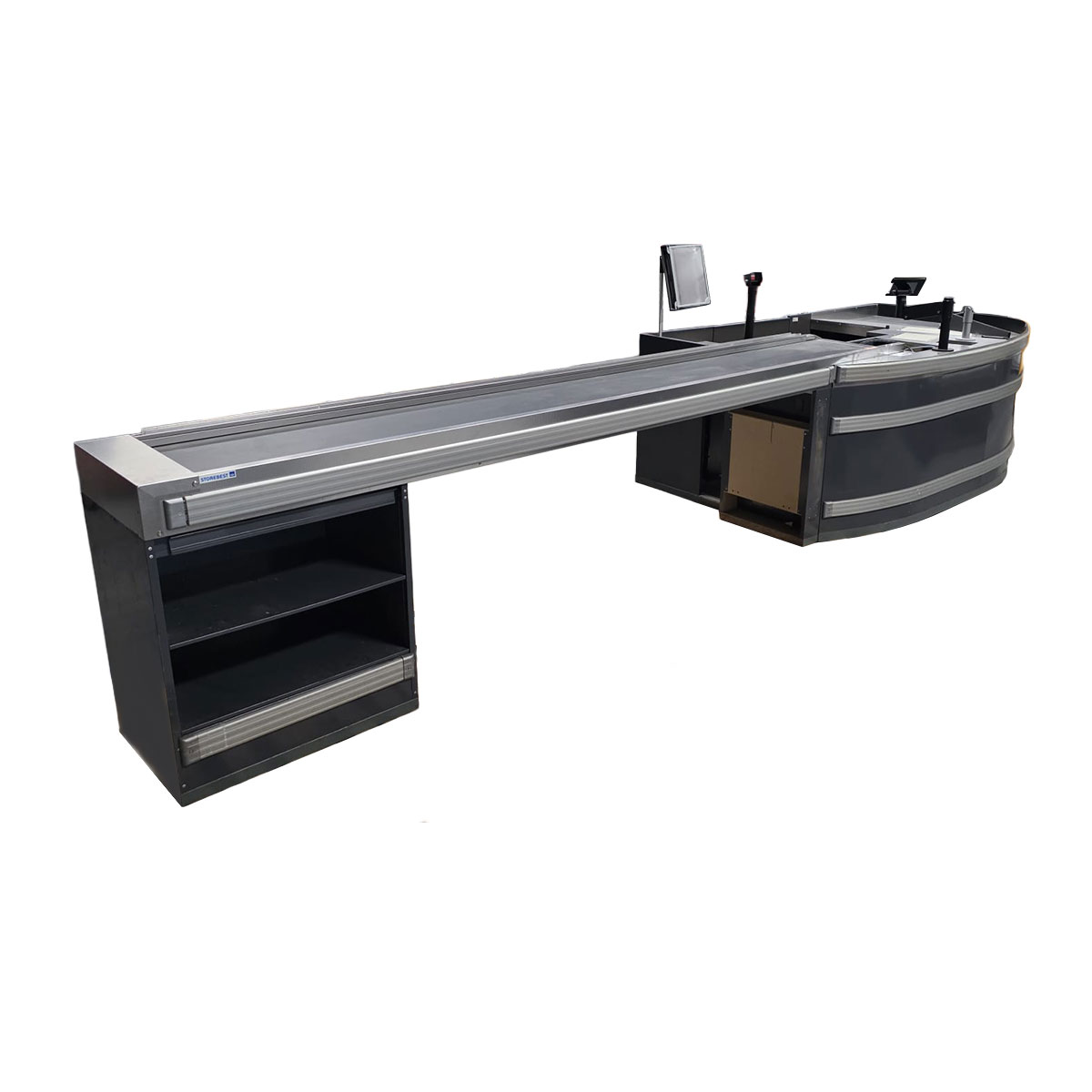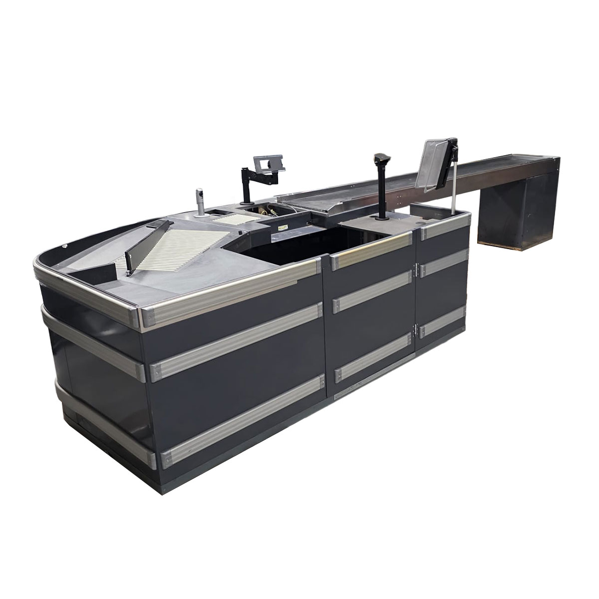 Der linksläufige Aufbau gewährleistet einen optimalen Kundenfluss und eine ergonomische Bedienung für das Kassenpersonal. Das integrierte Laufband mit einer Länge von 3.200 mm ermöglicht eine effiziente Warenbeförderung und beschleunigt den Kassiervorgang.