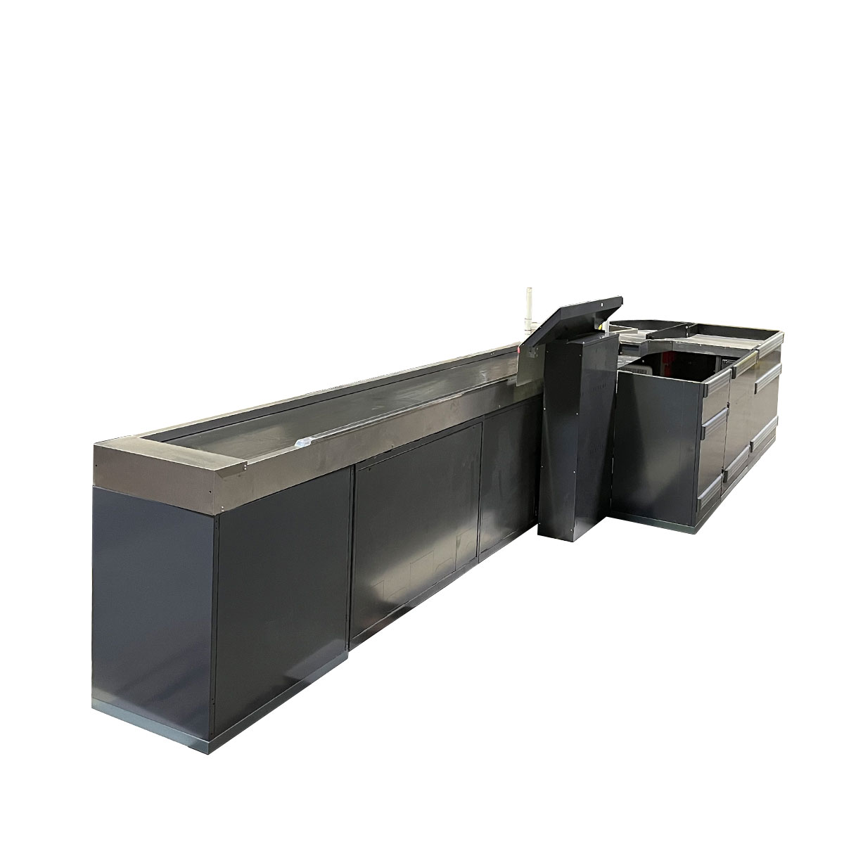 Der rechtsläufige Aufbau gewährleistet einen optimalen Kundenfluss und eine ergonomische Bedienung für das Kassenpersonal. Das integrierte Laufband mit einer Länge von 3.200 mm ermöglicht eine effiziente Warenbeförderung und beschleunigt den Kassiervorgang.