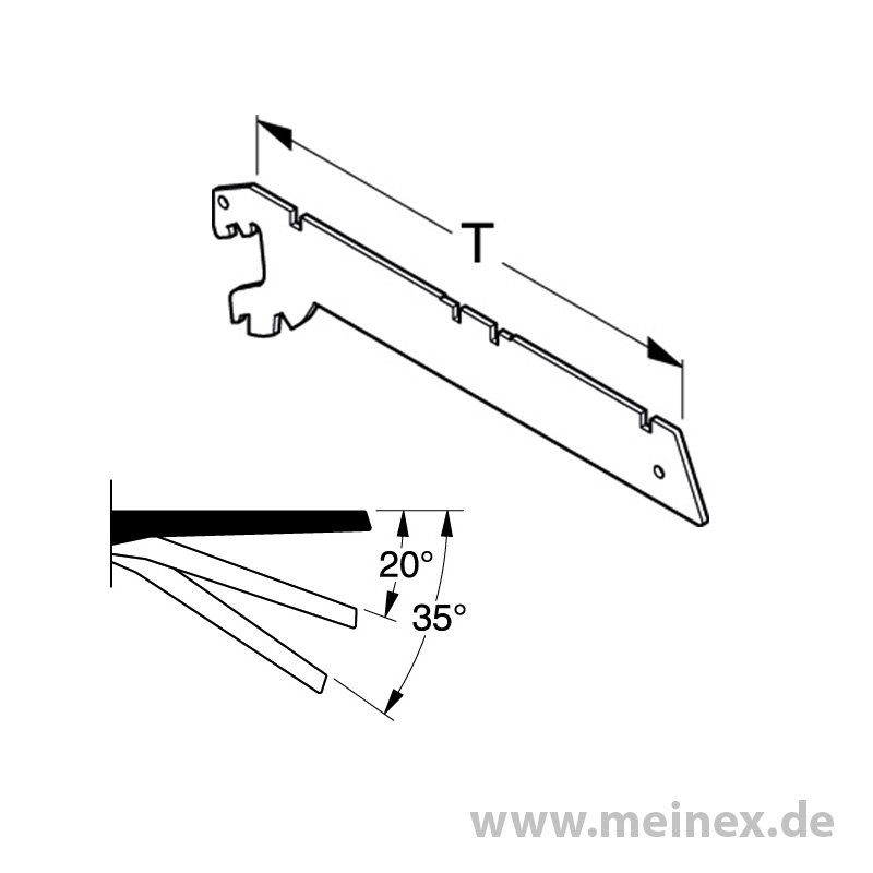 - 2-mal schrägstellbar (20°, 35°) nach unten in Wandschienen und Säulen