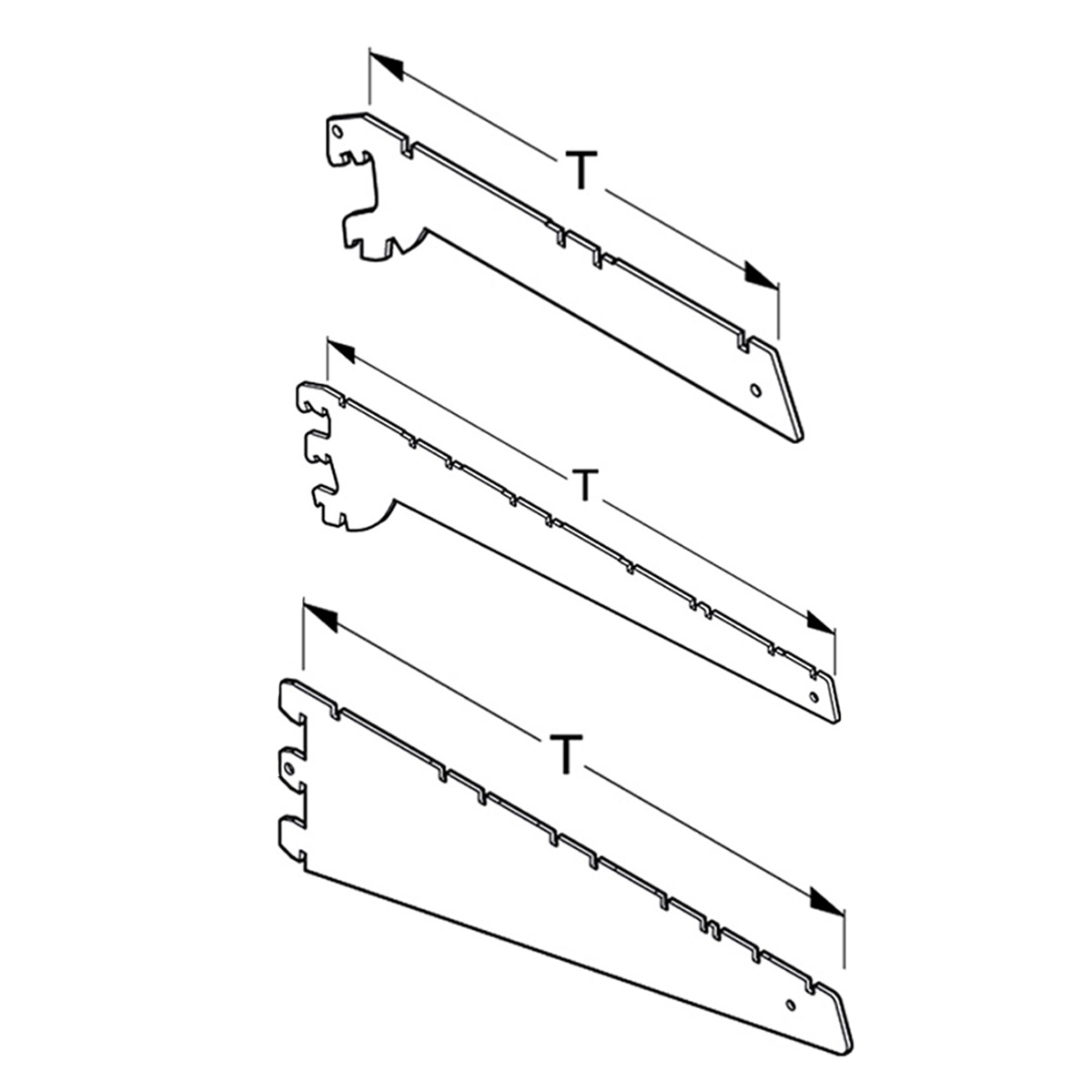 - Für Fachböden der Tiefe 300, 370, 470, 570 und 670 mm geeignet