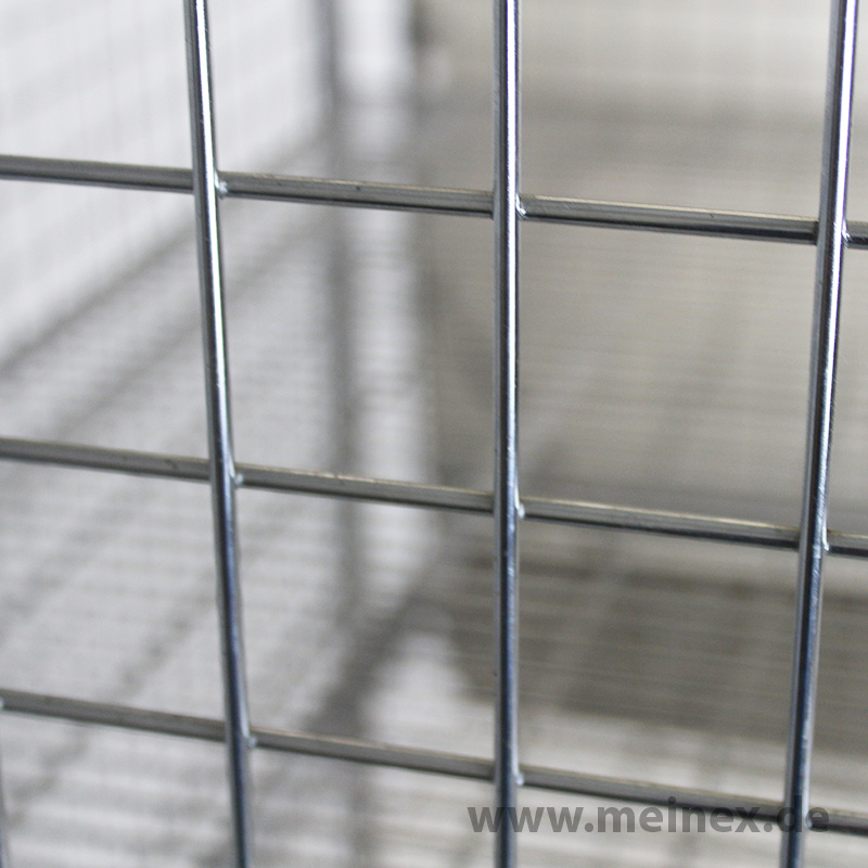 Die Seitenwände und die Rückwand bestehen aus Gitterelementen, die nicht nur für Stabilität sorgen, sondern auch eine optimale Luftzirkulation ermöglichen. Dies macht den Schrank besonders geeignet für Materialien, die gut belüftet gelagert werden müssen, wie z. B. Chemikalien, Elektronik oder Akten.