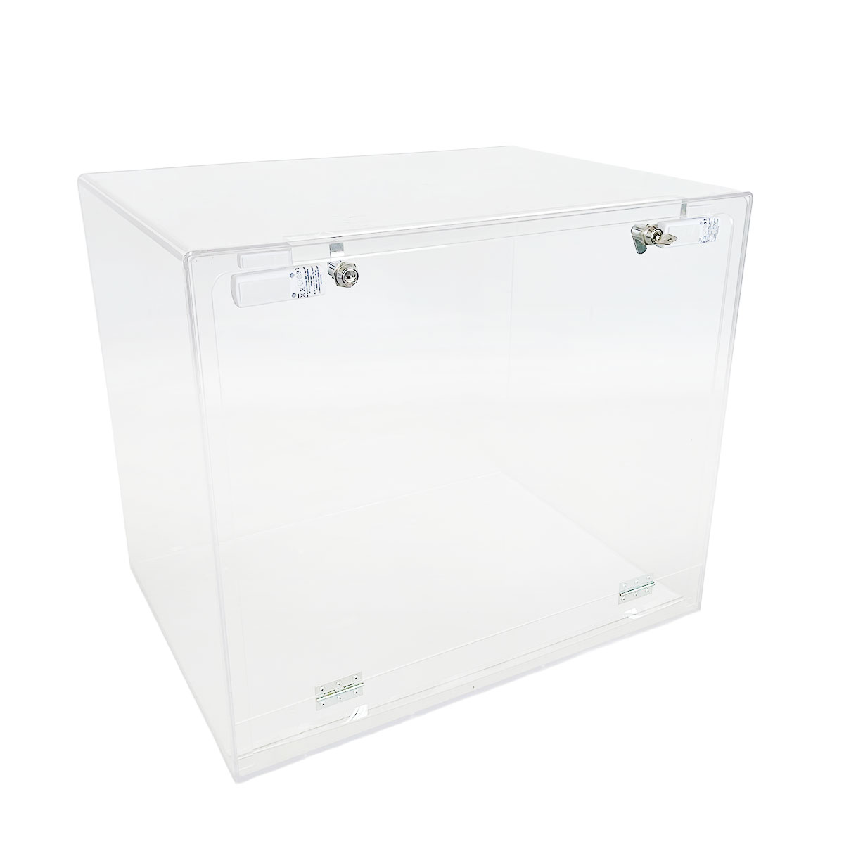 Die Vitrine besteht aus hochwertigem, 5 mm starkem Acrylglas, das nicht nur für eine klare, nahezu glasklare Sicht auf den Inhalt sorgt, sondern auch eine stabile und einbruchshemmende Hülle bietet. Zwei seitlich angebrachte Sicherheitsschlösser sorgen dafür, dass der Inhalt vor unbefugtem Zugriff geschützt bleibt – ideal für die Präsentation von Schmuck, Uhren, Sammlerstücken, technischen Geräten oder musealen Objekten.