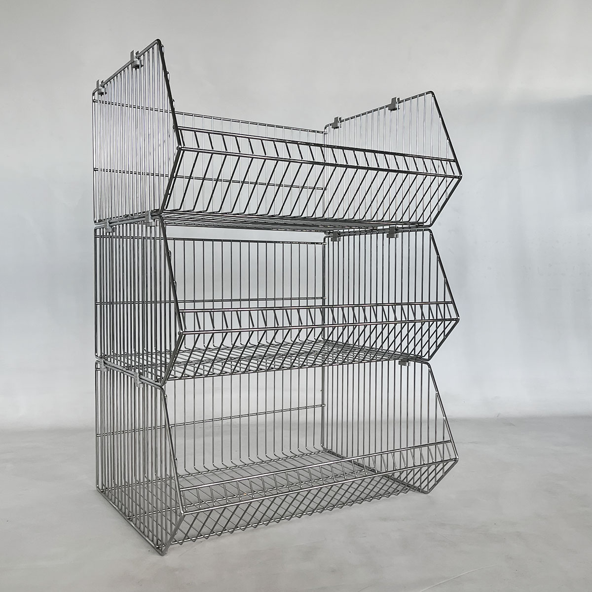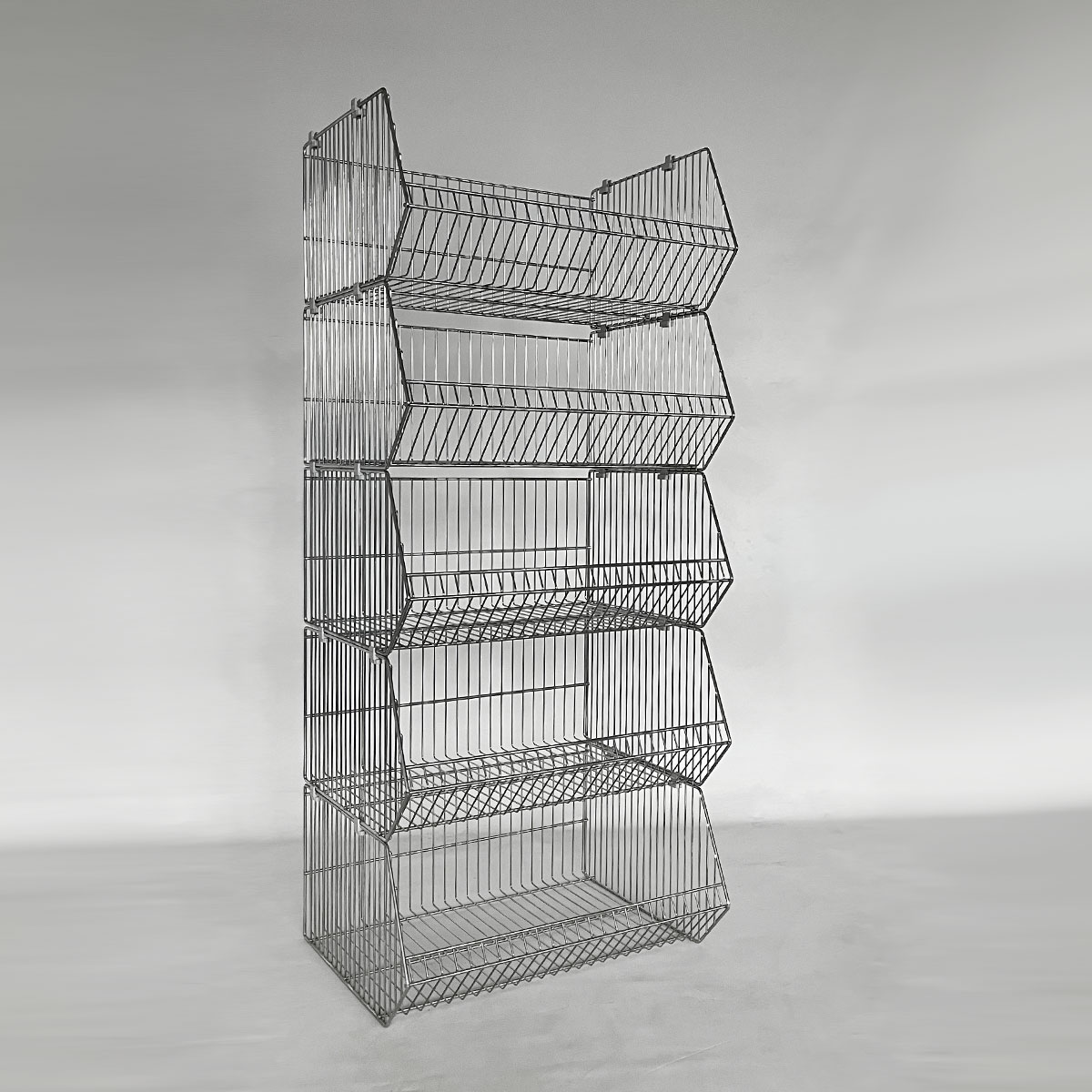 Der Stapelkorb ist besonders leicht zu transportieren und umzustellen, da er mit einem geringen Eigengewicht konstruiert wurde. Bei Nichtgebrauch können die Körbe gestapelt werden, um den benötigten Stauraum zu minimieren. Dies erleichtert die Lagerhaltung erheblich und macht den Korb ideal für den flexiblen Einsatz in wechselnden Verkaufsbereichen.
