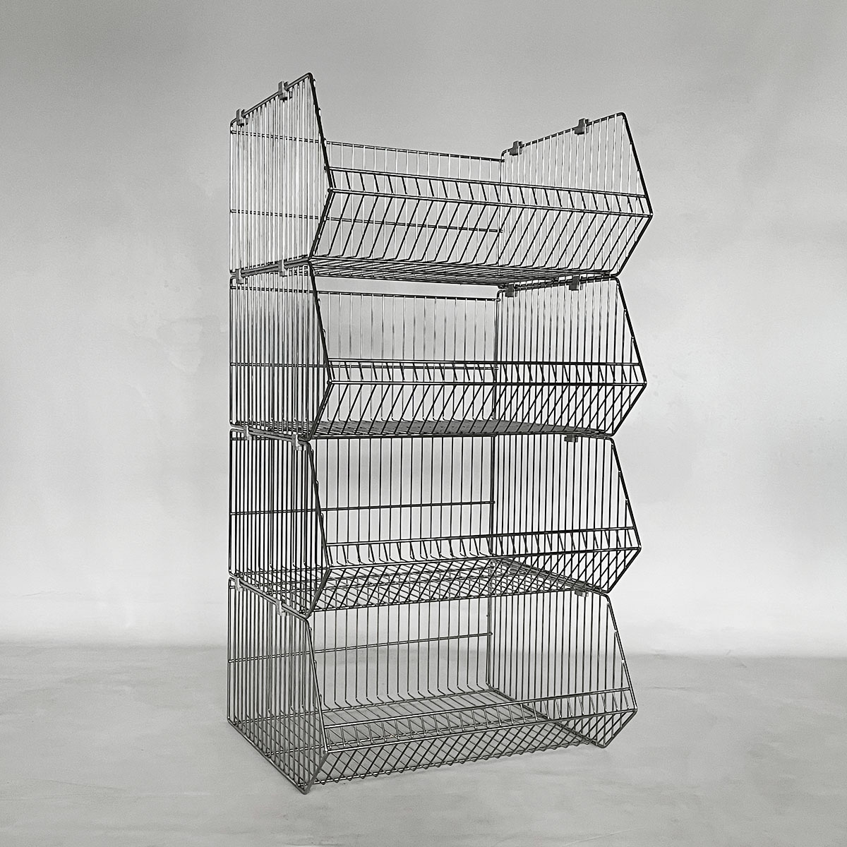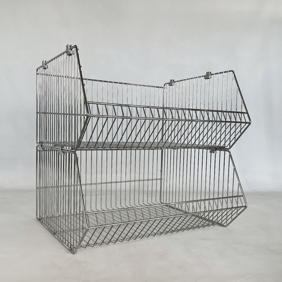 Dieser Stapelkorb wurde von Wanzl, einem der führenden Hersteller für Ladenbau- und Logistiklösungen, gefertigt. Die Konstruktion besteht aus stabilem, verzinktem Drahtgitter, das für eine lange Lebensdauer sorgt und gleichzeitig ein geringes Eigengewicht aufweist. Dank der hochwertigen Verarbeitung ist der Korb widerstandsfähig gegen Rost und mechanische Belastungen, was ihn zu einer langlebigen Wahl für den täglichen Gebrauch macht.