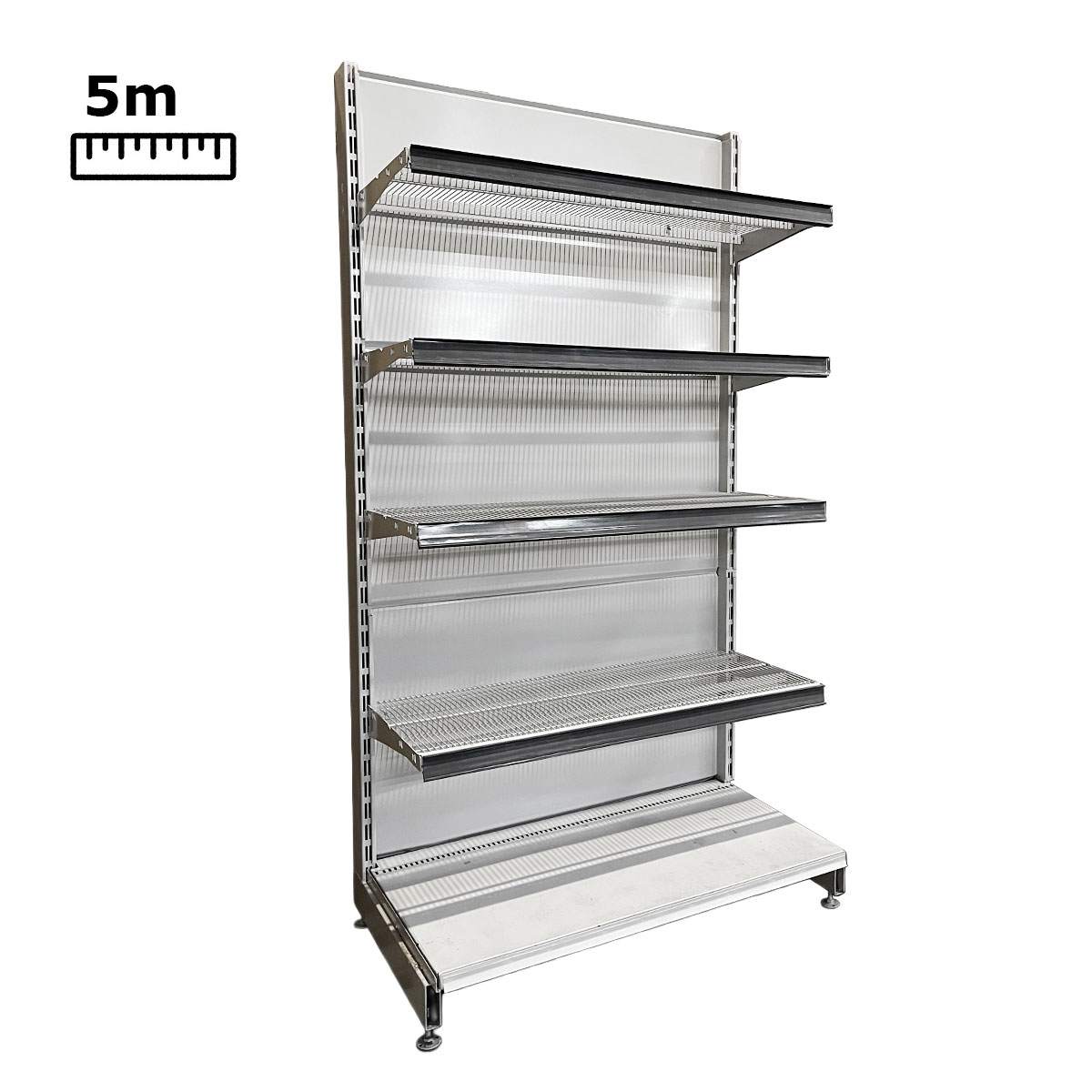 Dieses Storebest Wandregal-System bietet maximale Flexibilität und professionelle Qualität für den täglichen Einsatz. Ob im Geschäft, Supermarkt oder Lager – mit einer Gesamtbreite von 5 Metern und robusten Gitter-Fachböden ist es die perfekte Lösung für eine übersichtliche und attraktive Warenpräsentation.
