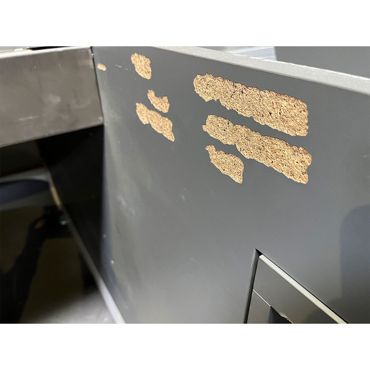 Der Kassentisch befindet sich in einem gebrauchten, funktionalen Zustand. Es sind übliche Gebrauchsspuren wie leichte Kratzer, kleinere Stoßstellen oder Verfärbungen vorhanden, die die Funktionsfähigkeit jedoch nicht beeinträchtigen.