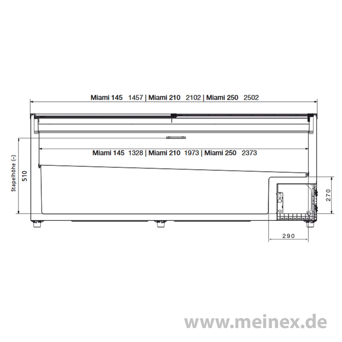 Modell Miami: Sparsames Kühl- & Tiefkühlgerät mit optimierter Warenpräsentation durch brilliante LED-Innenbeleuchtung. Die Tiefkühltruhe AHT Miami 145 (-) VSAD eignet sich ideal für Supermärkte - die neue Dimension der Kühl- und Tiefkühlgeräte - mehr Ware besser präsentiert.