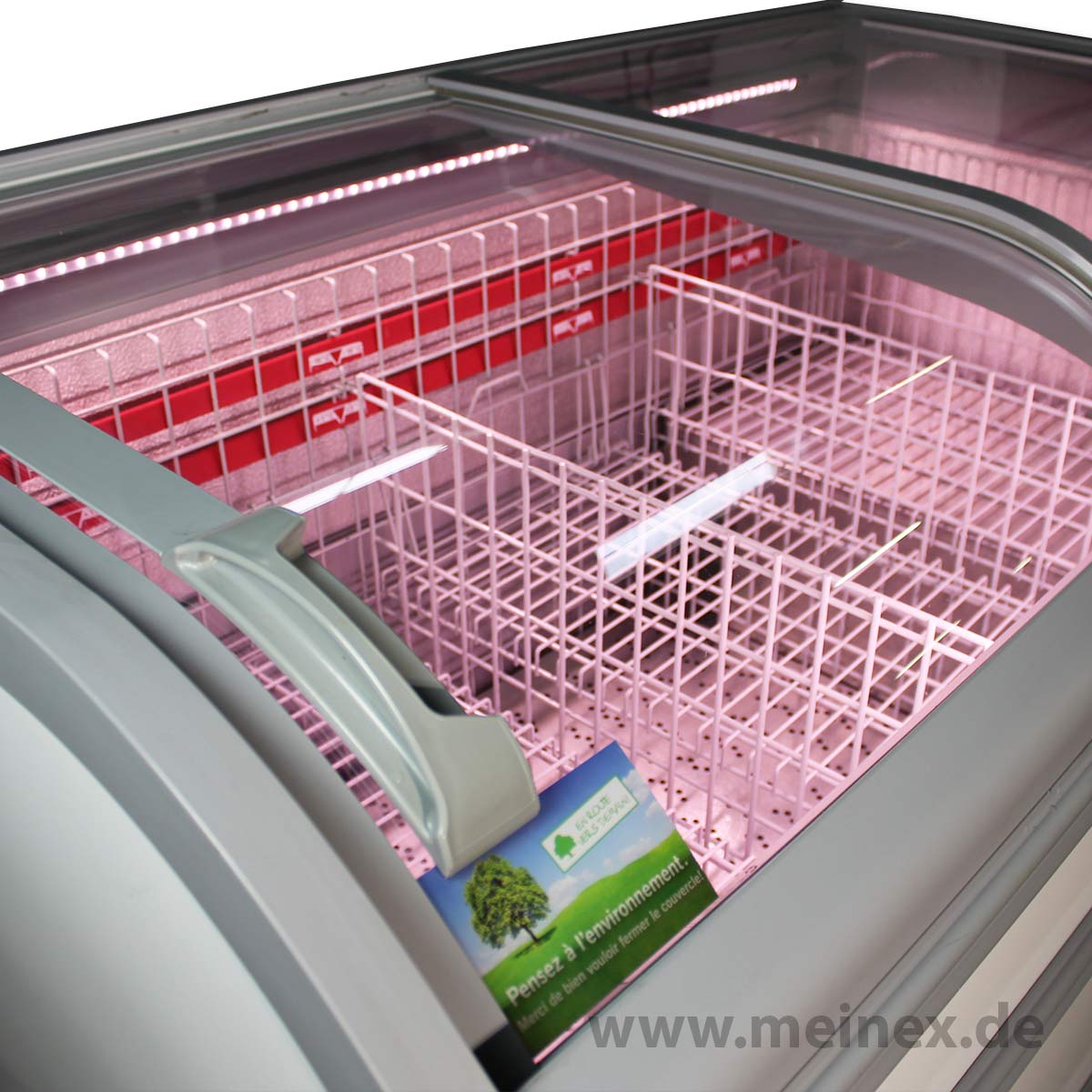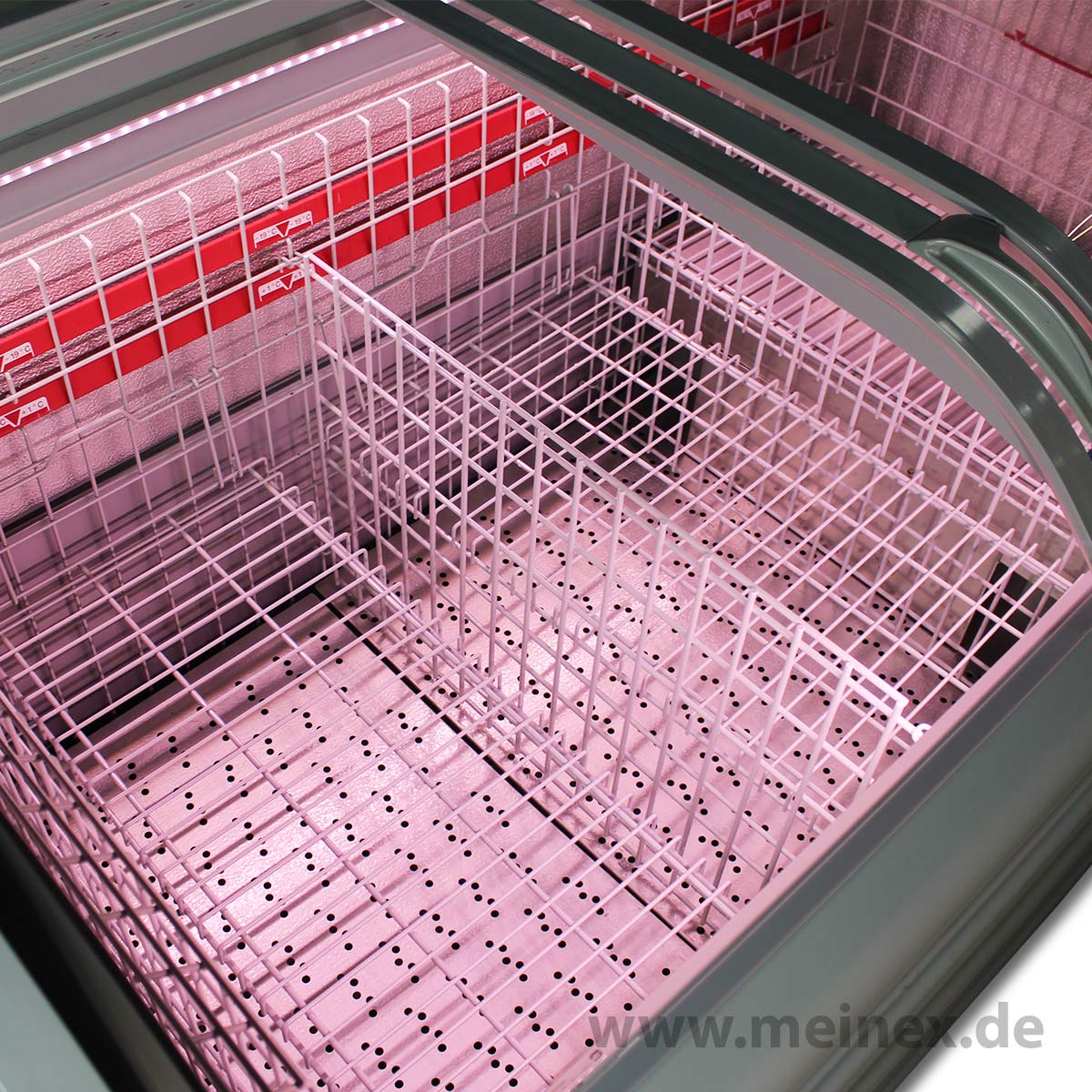 Die Tiefkühltruhe wird ohne Gitter geliefert. Die auf den Produktfotos sichtbaren Gitter dienen lediglich der Darstellung und sind nicht im Lieferumfang enthalten.