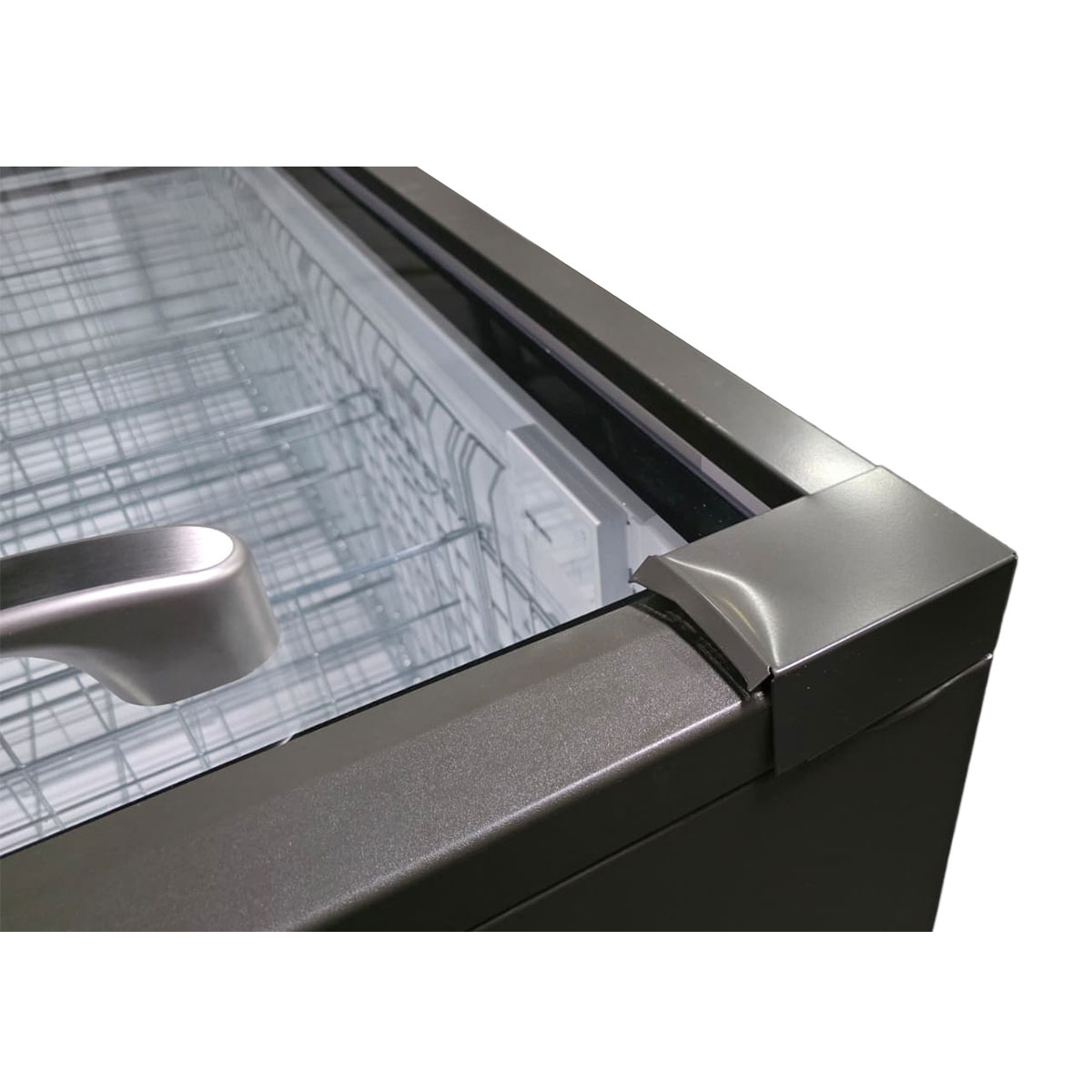 - Glasschiebedeckel aus gehärtetem Einscheibensicherheitsglas für perfekte Wareneinsicht