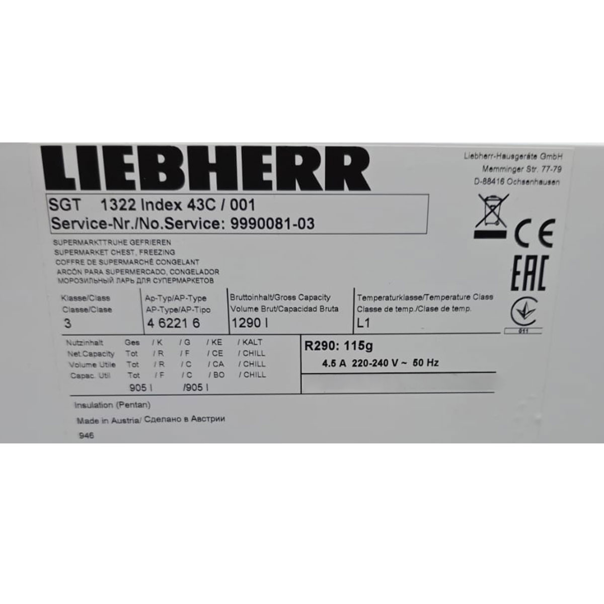 Mit einem Bruttoinhalt von 1.290 Litern und einem Nutzinhalt von 905 Litern bietet die Truhe ausreichend Platz für eine große Warenmenge und eignet sich ideal für Supermärkte, Großküchen, Metzgereien, Gastronomiebetriebe oder den Lebensmittelhandel.