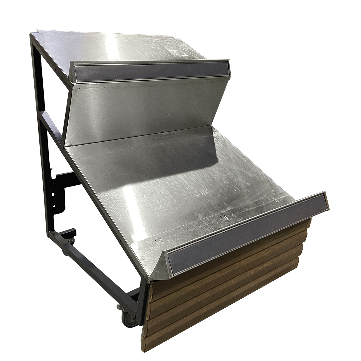 Dieser Warenpräsentationstisch ist für die Obst- und Gemüseabteilung geeignet. Der Tisch besteht aus Edelstahl, ist stabil und in einem guten Zustand.